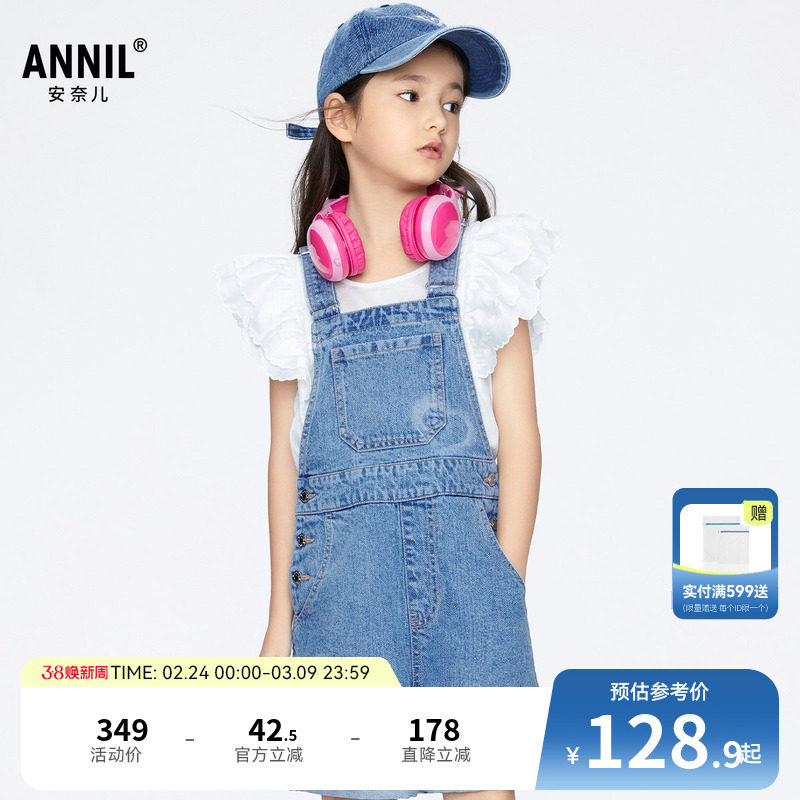📚 【商场同款】安奈儿童装女童牛仔背带短裤夏时尚AG426641