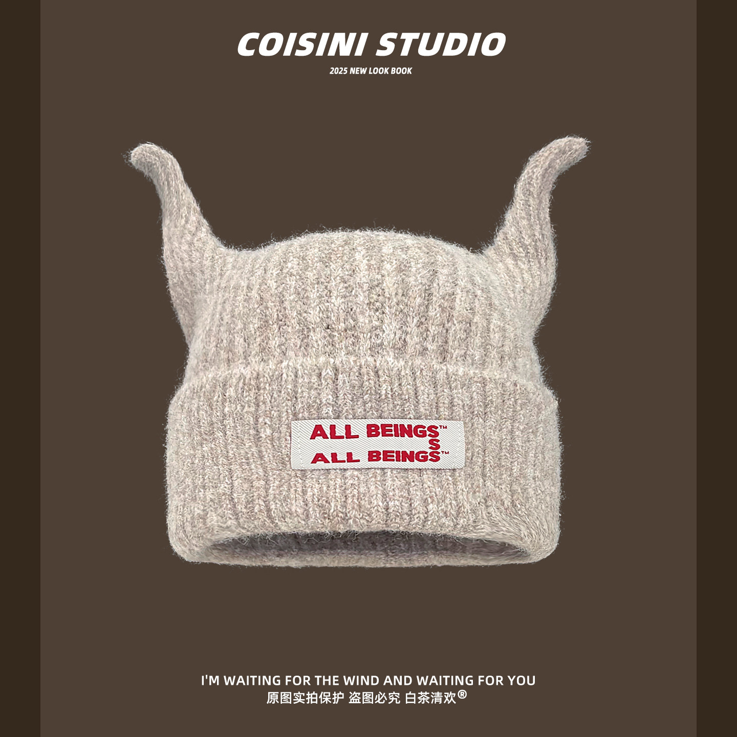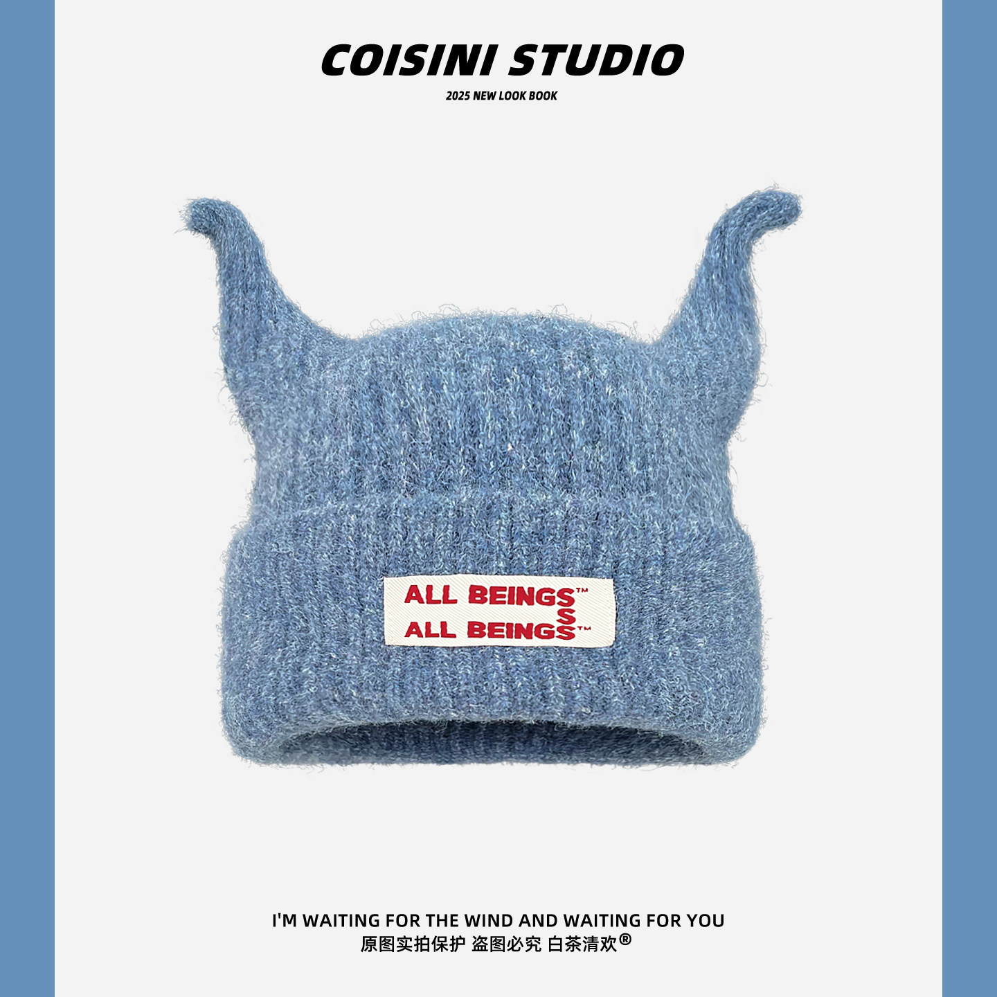 📚 新款日系可爱搞怪触角针织帽子女秋冬学生保暖百搭显脸小毛线帽潮