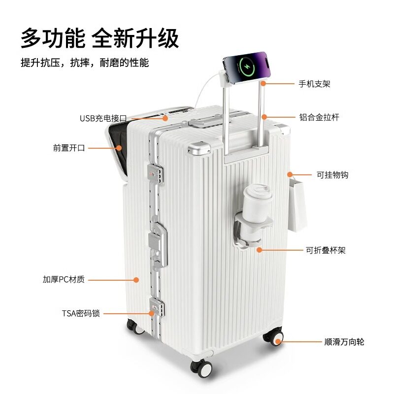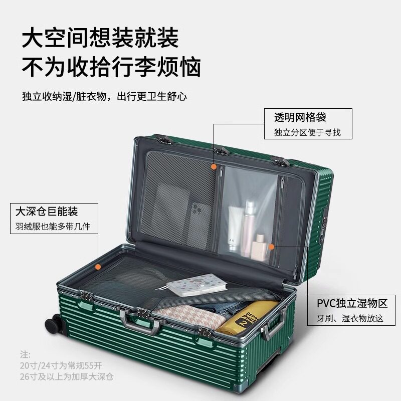 📚 前开口行李箱28寸大容量2026热卖30出国托运女26铝框旅行拉杆箱男