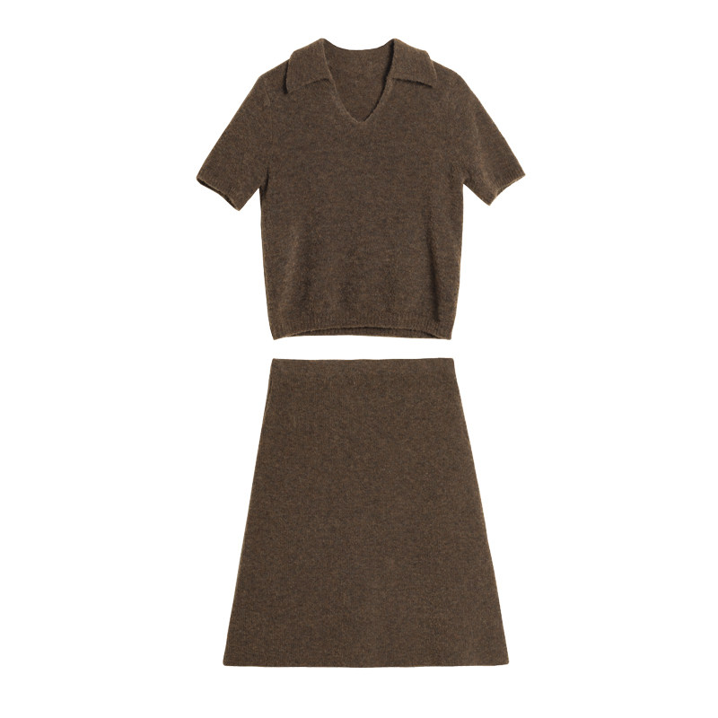 📚 322WORKHOUSE羊毛针织短袖上衣搭配半裙女士新款秋冬套装B125+126