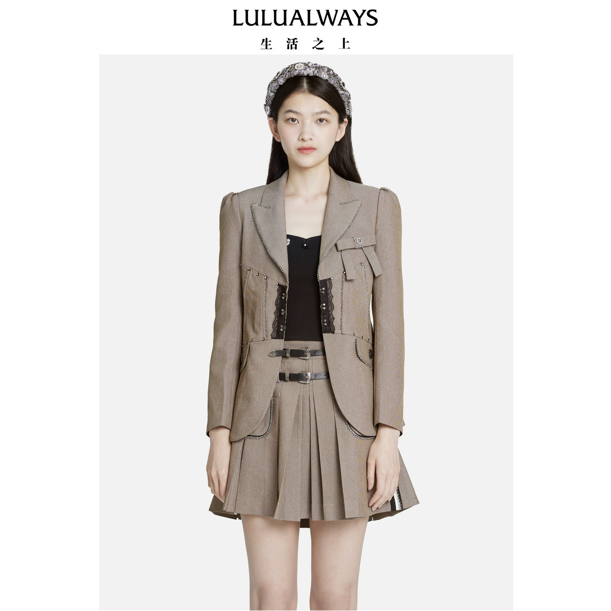 📚 我爱露露LULUALWAYS秋季新款文艺复古翻领拼接长袖西装外套
