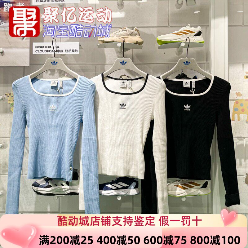 📚 阿迪达斯三叶草女装2024冬新款舒适透气收腰休闲针织套头衫JM8052