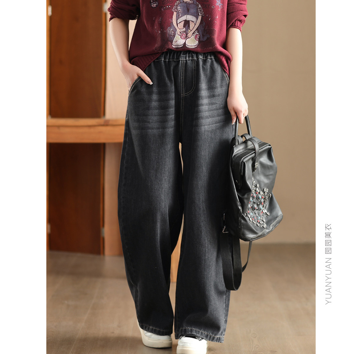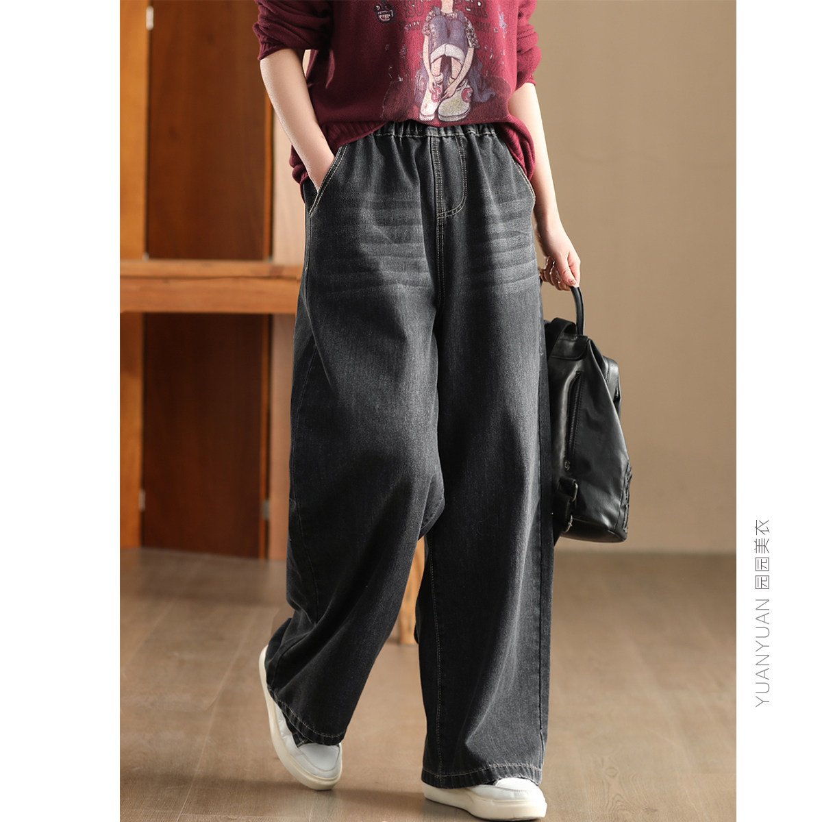 📚 园园美衣春季复古炒色水洗牛仔裤松紧腰直筒裤休闲阔腿裤显瘦长裤