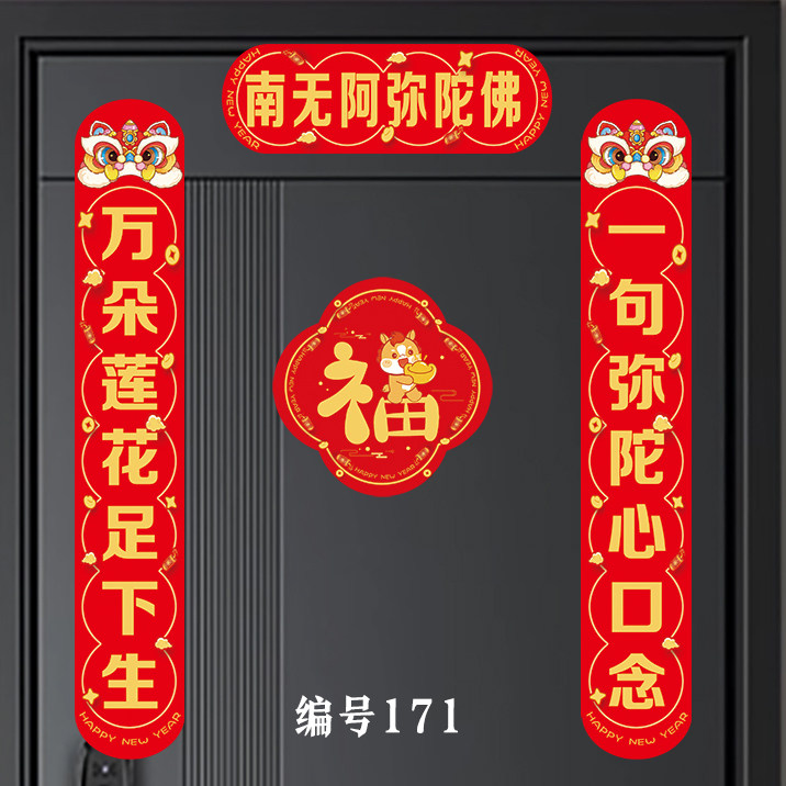 📚 佛对联新年对子防盗门春联门对佛堂庙门佛字对联防水自粘定做