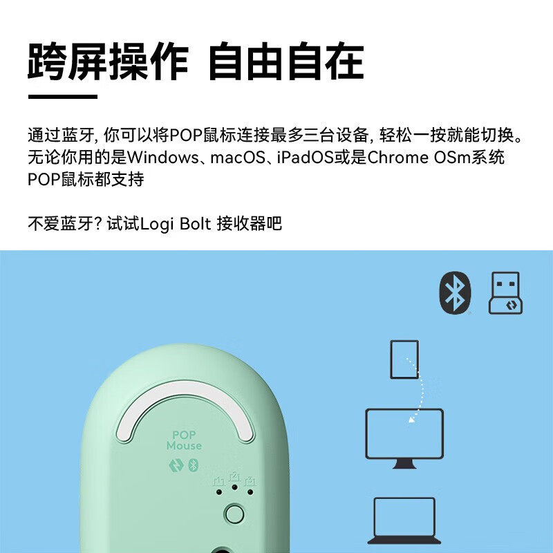 📚 罗技POP MOUSE大耳狗办公双模无线鼠标蓝牙小手女生可爱续航轻音