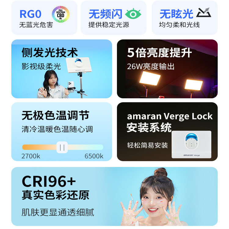 📚 Aputure/爱图仕 amaran艾蒙拉Verge双色温侧发光美颜桌面补光灯