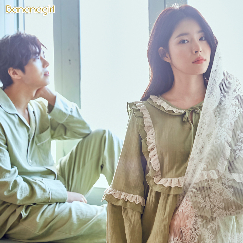 📚 Bananagirl睡衣女春秋韩版甜美长袖情侣清新套头家居服男士套装新
