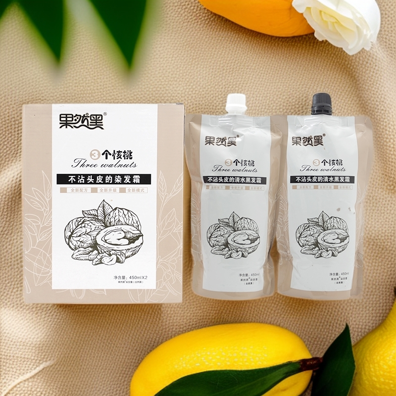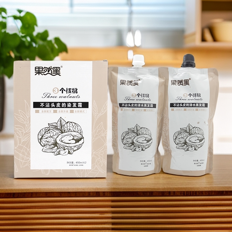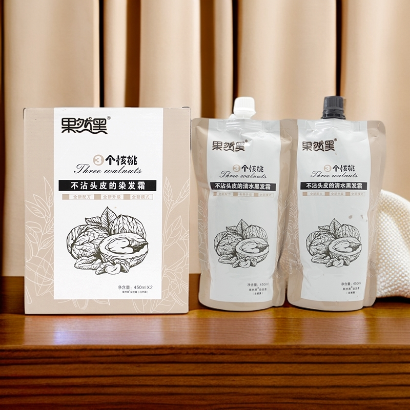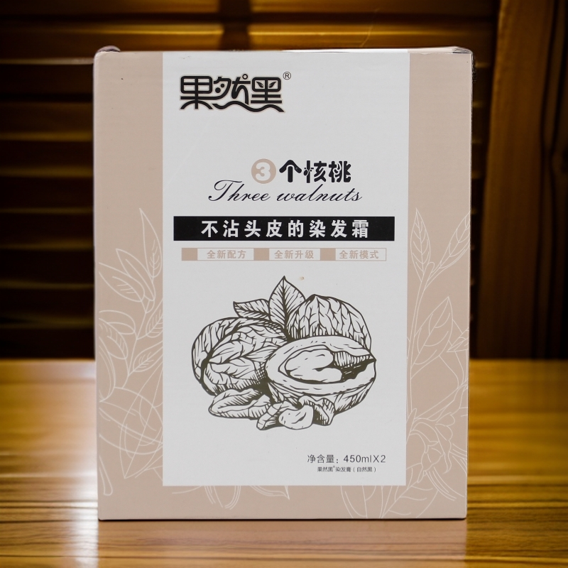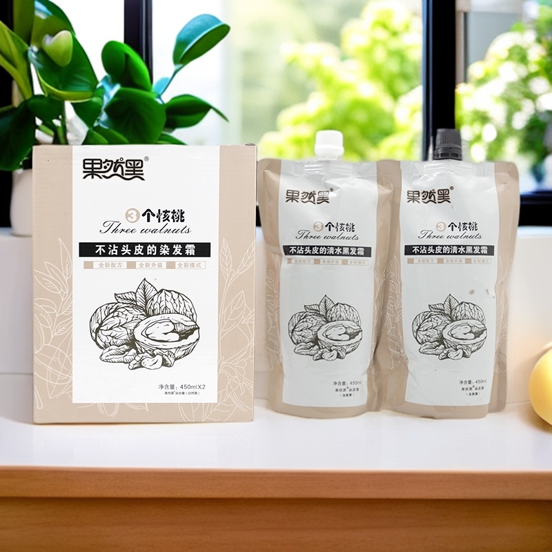 📚 果然黑三3个核桃清水染发膏黑发霜植物健康染发剂纯黑色不沾头皮