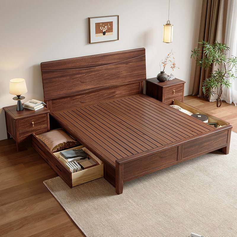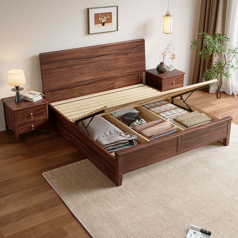 📚 新中式橡胶木实木床1米8主卧大床气压高箱储物床1米5单人床儿童床