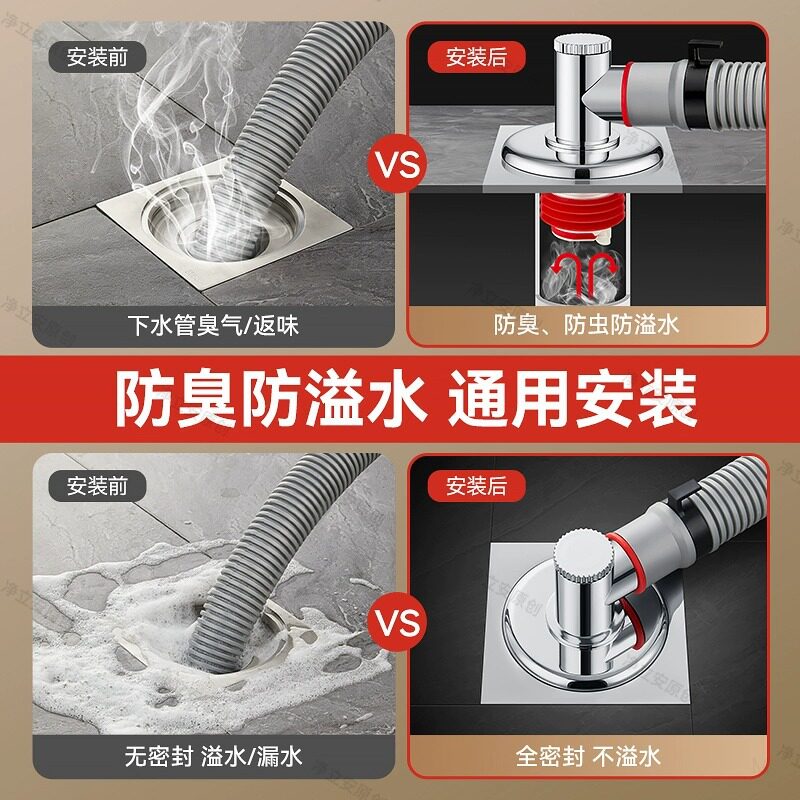 📚 洗衣机下水止逆阀防反水下水管三头通地漏二合一排水管防溢水接头