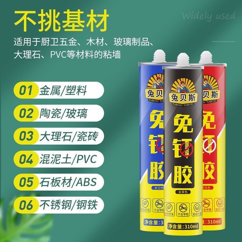 📚 兔贝斯免钉胶强力胶免打孔胶万能高粘度贴墙面瓷砖专用透明玻璃胶