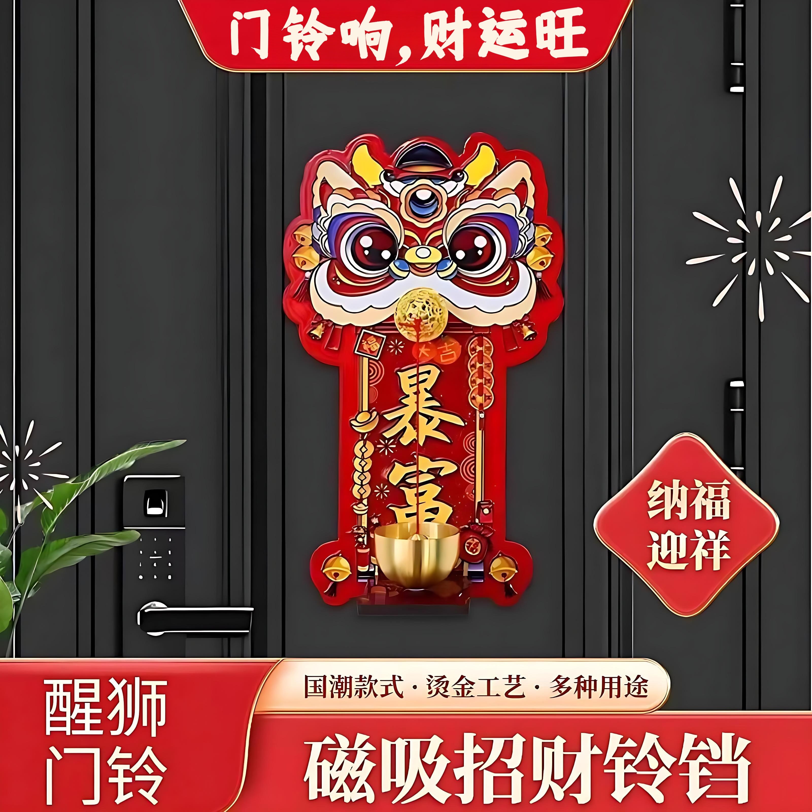 📚 醒狮磁吸门铃2026马年发财暴富装饰摆件新年春节过节氛围布置挂饰