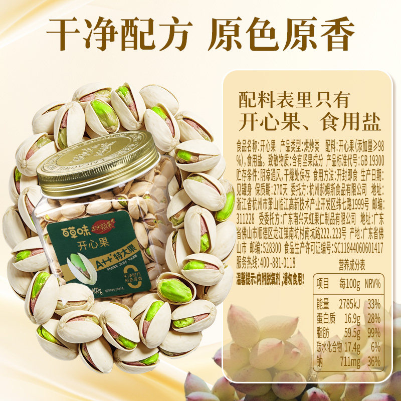 📚 【k姐年货节】百草味本味开心果400g原色无漂白特大颗粒