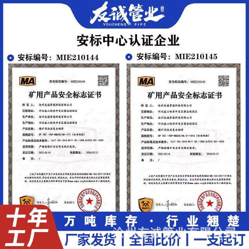 📚 108矿用涂塑钢管 DN100煤矿井下用涂层复合钢管 瓦斯抽放涂塑钢管