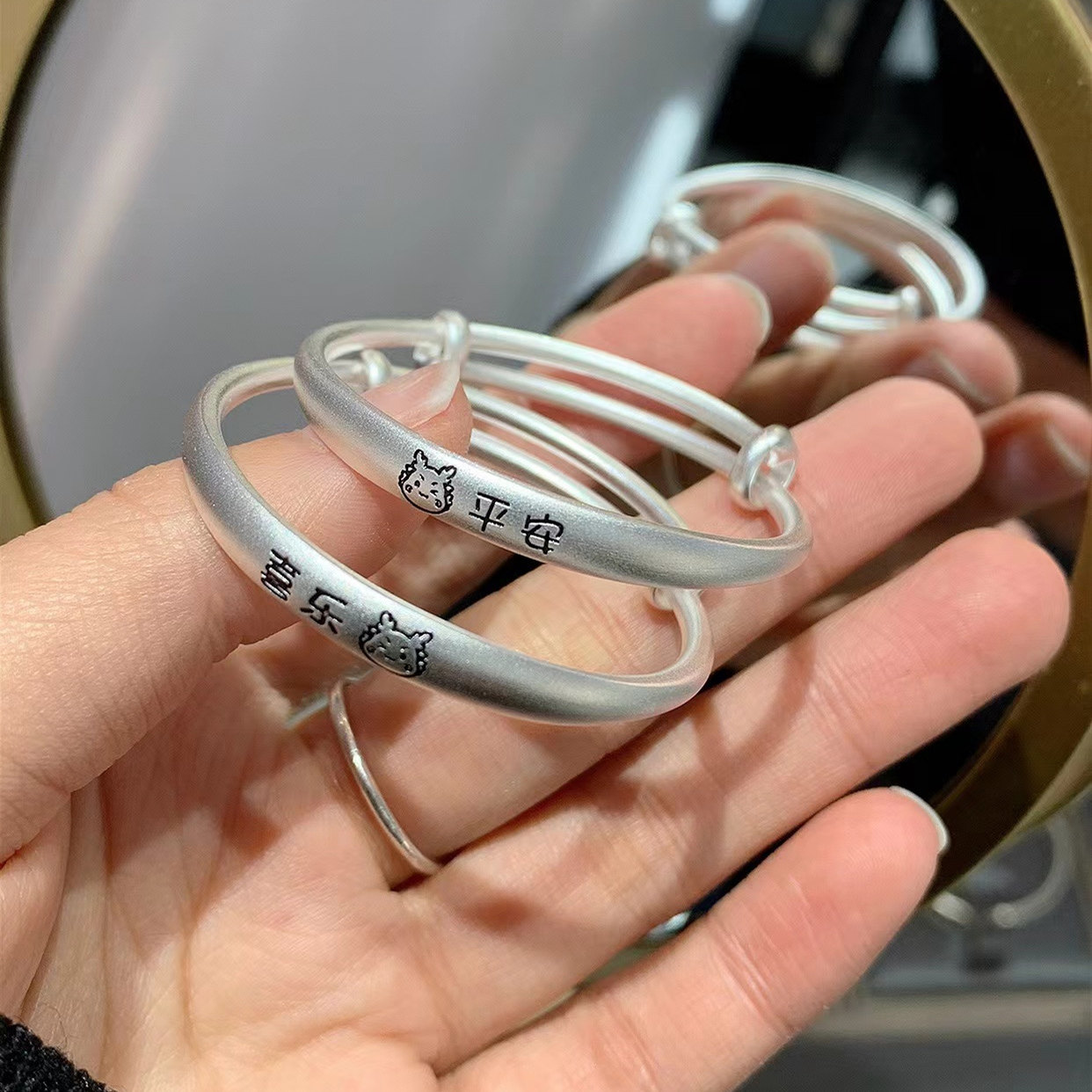 📚 龙年宝宝银手镯婴儿足银999纯银儿童镯子新生儿满月饰品周岁礼物