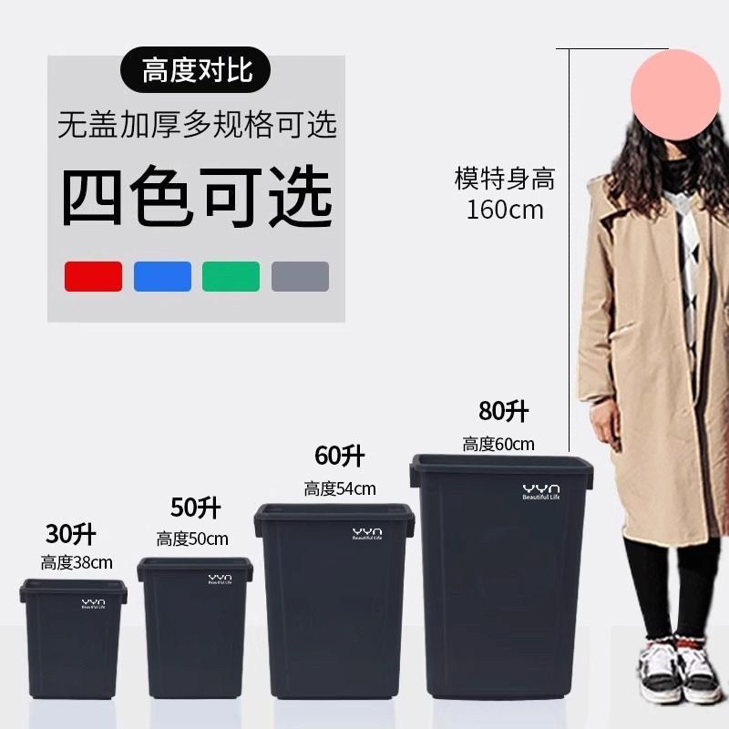 📚 商用无盖大垃圾桶大容量方形家用厨房专用大号20升40L客厅卫生桶