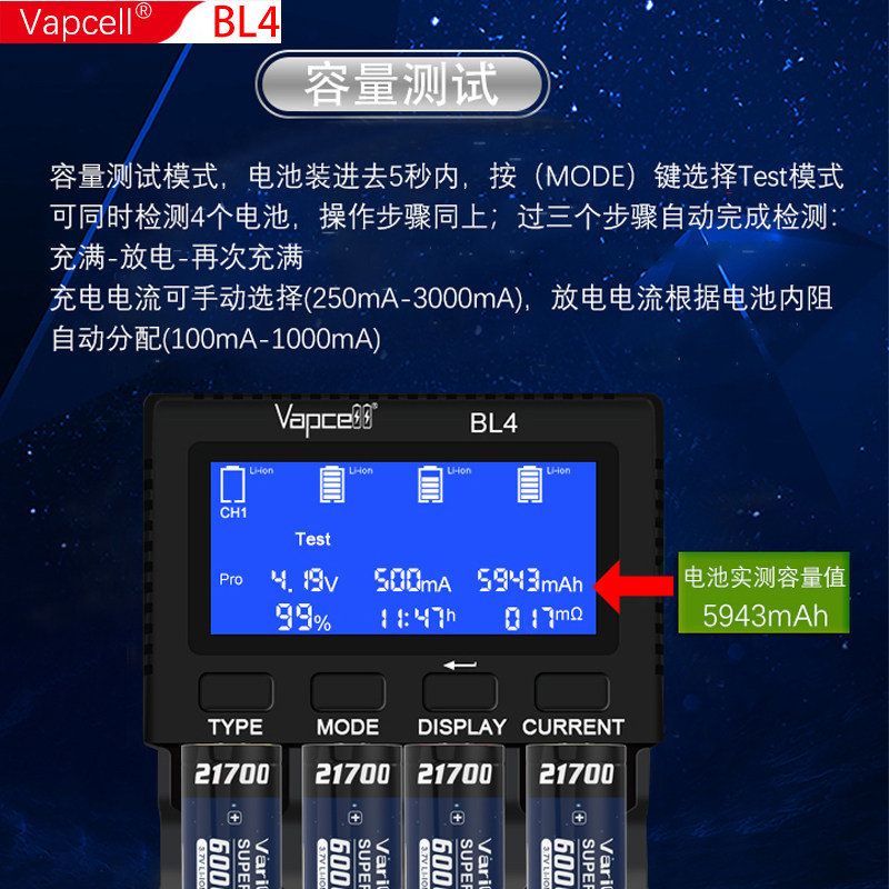 📚 18650充电器3.7V21700锂电池26650快充容量检测内阻1.5V5号7镍氢