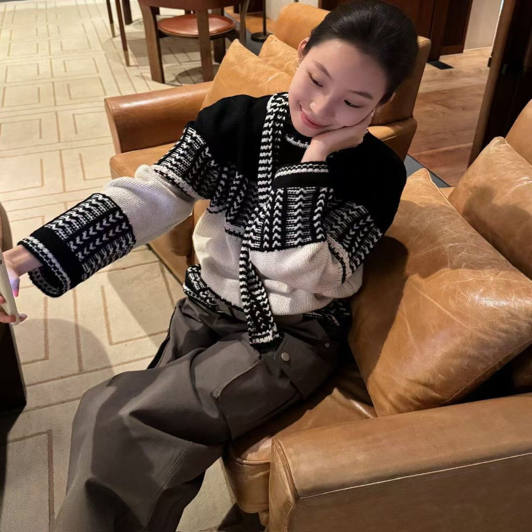 📚 AT fashion2025秋冬新款提花撞色男女同款针织毛衣配围巾慵懒上衣