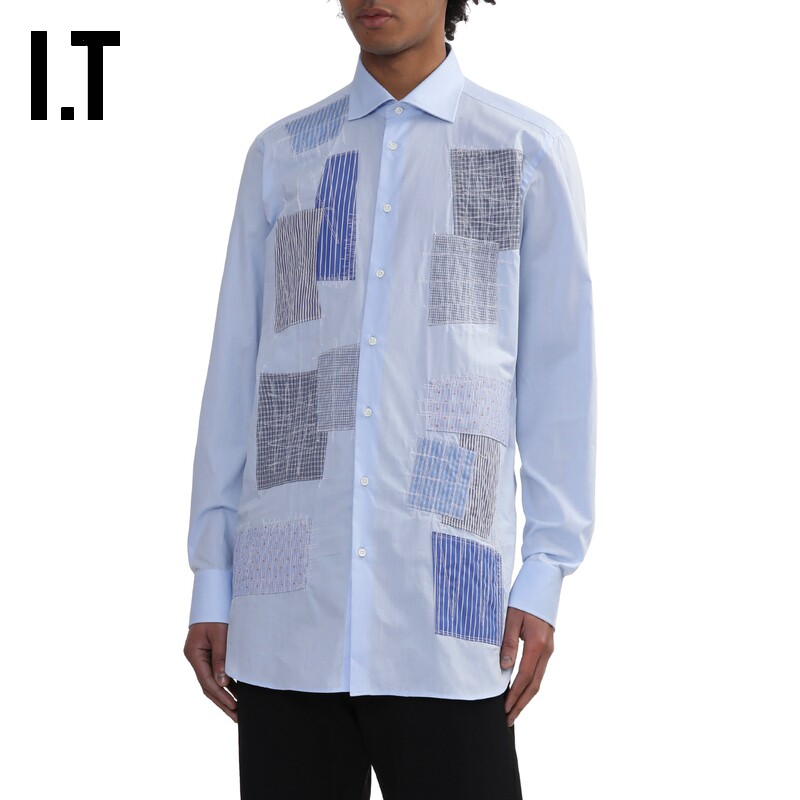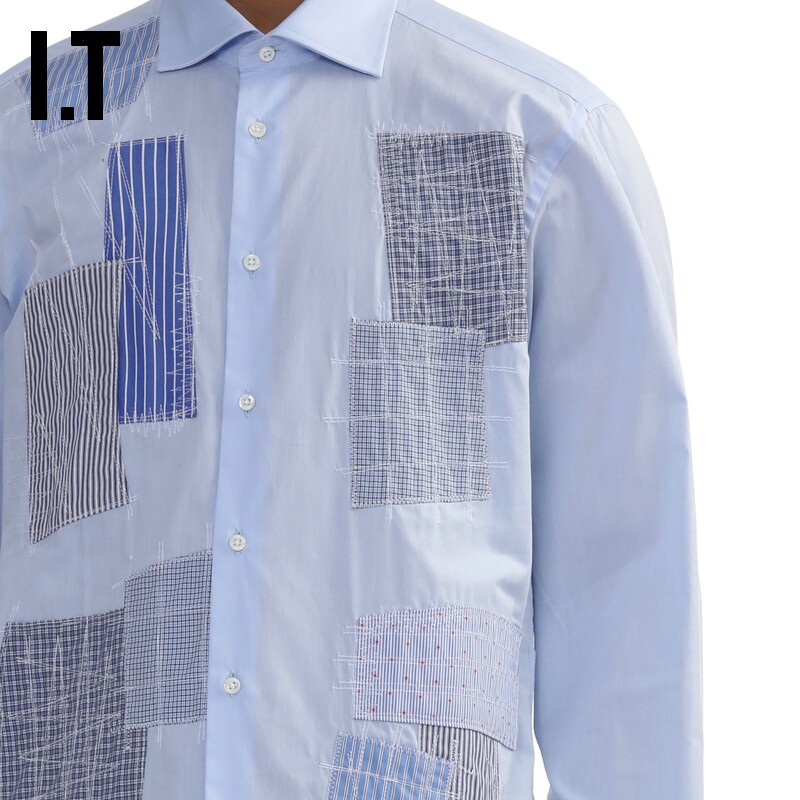 📚 IT JUNYA WATANABE男装长袖衬衫新款时尚日潮裁片拼接衬衣B023MO