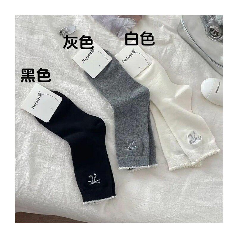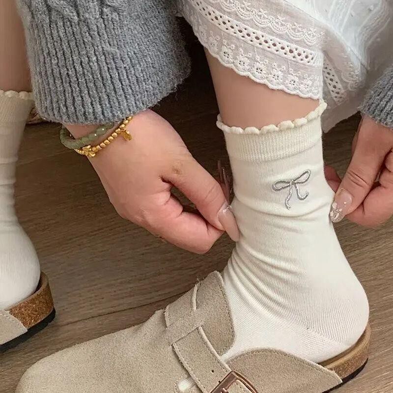 📚 新款温柔花边袜子女中筒袜ins潮秋冬百搭可爱木耳边蝴蝶结堆堆袜
