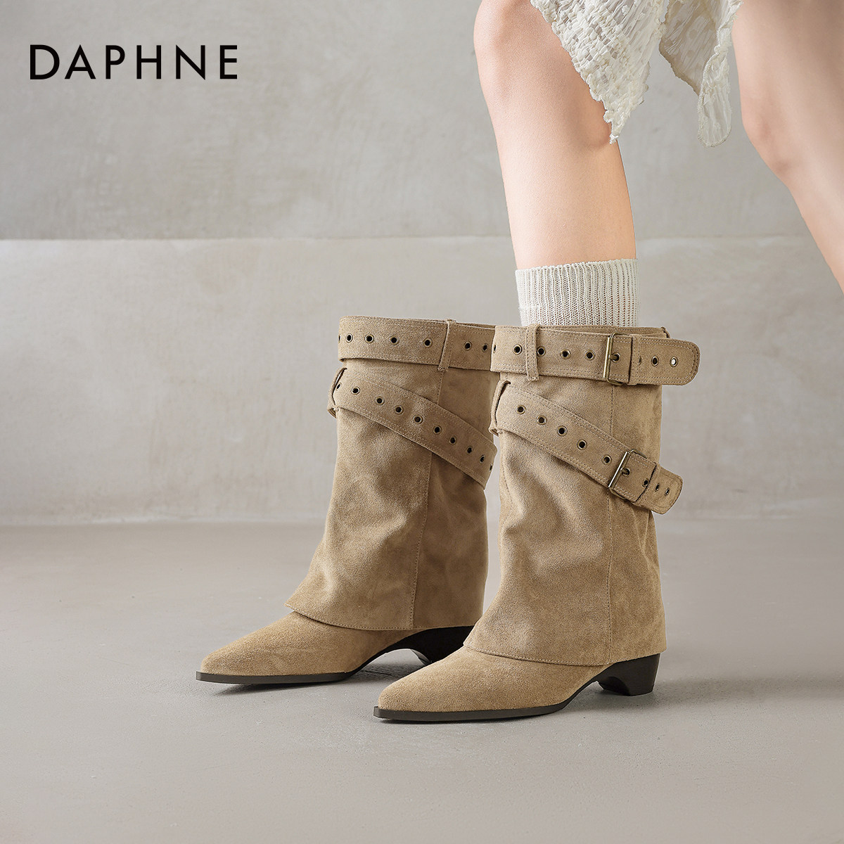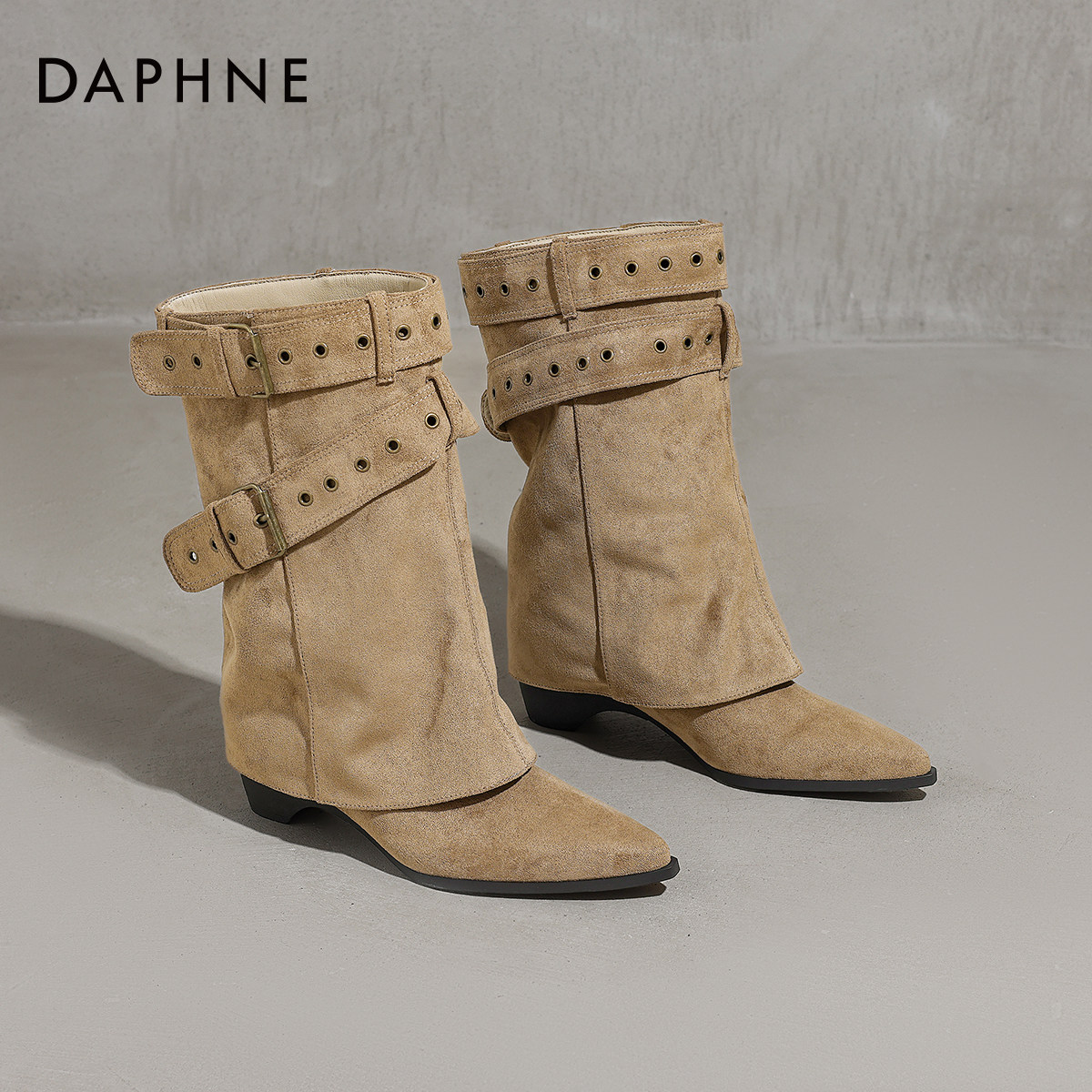📚 达芙妮尖头西部牛仔裤管短靴2026新款女款美拉德巨好看女靴子秋冬
