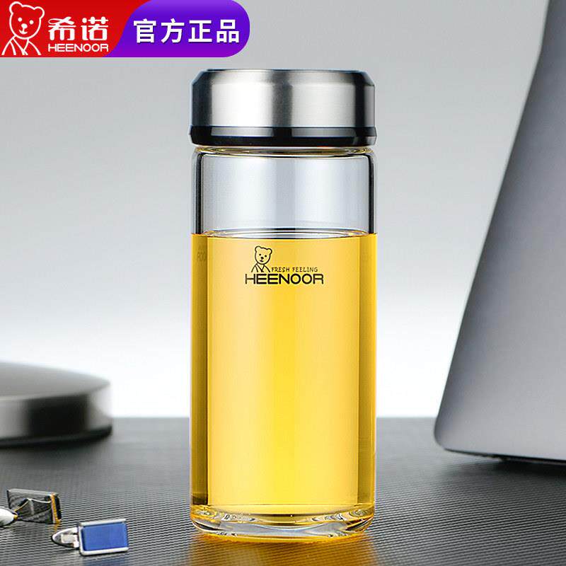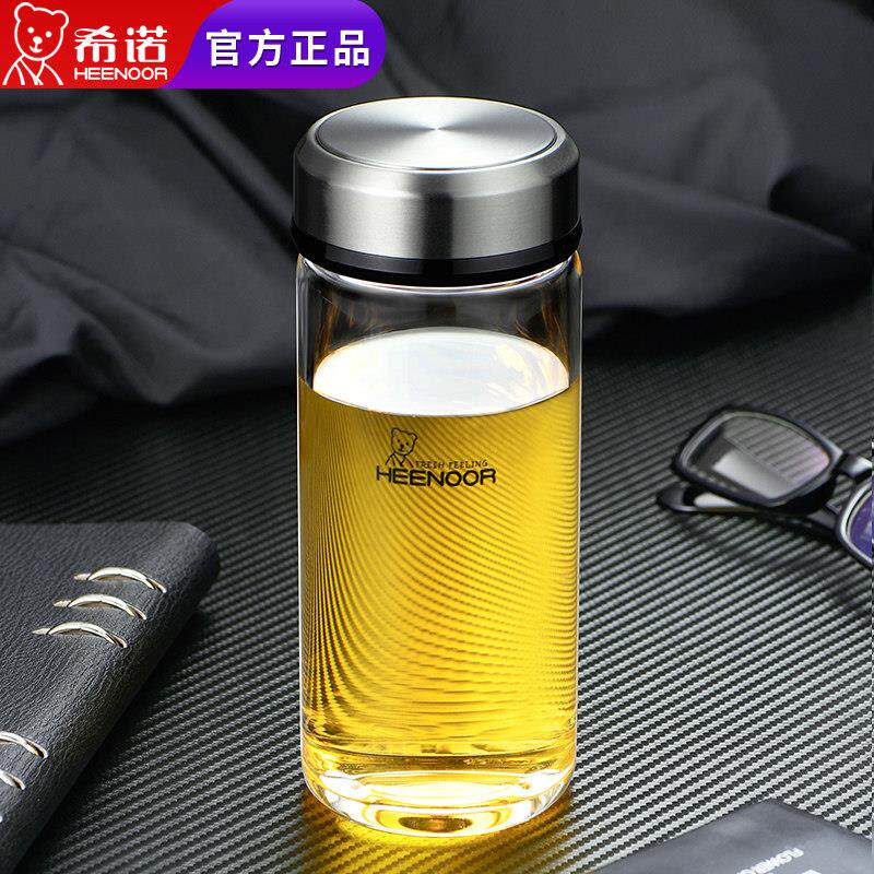 📚 希诺单层玻璃杯加厚便携家用杯子男女士带盖泡茶杯个人专用水杯