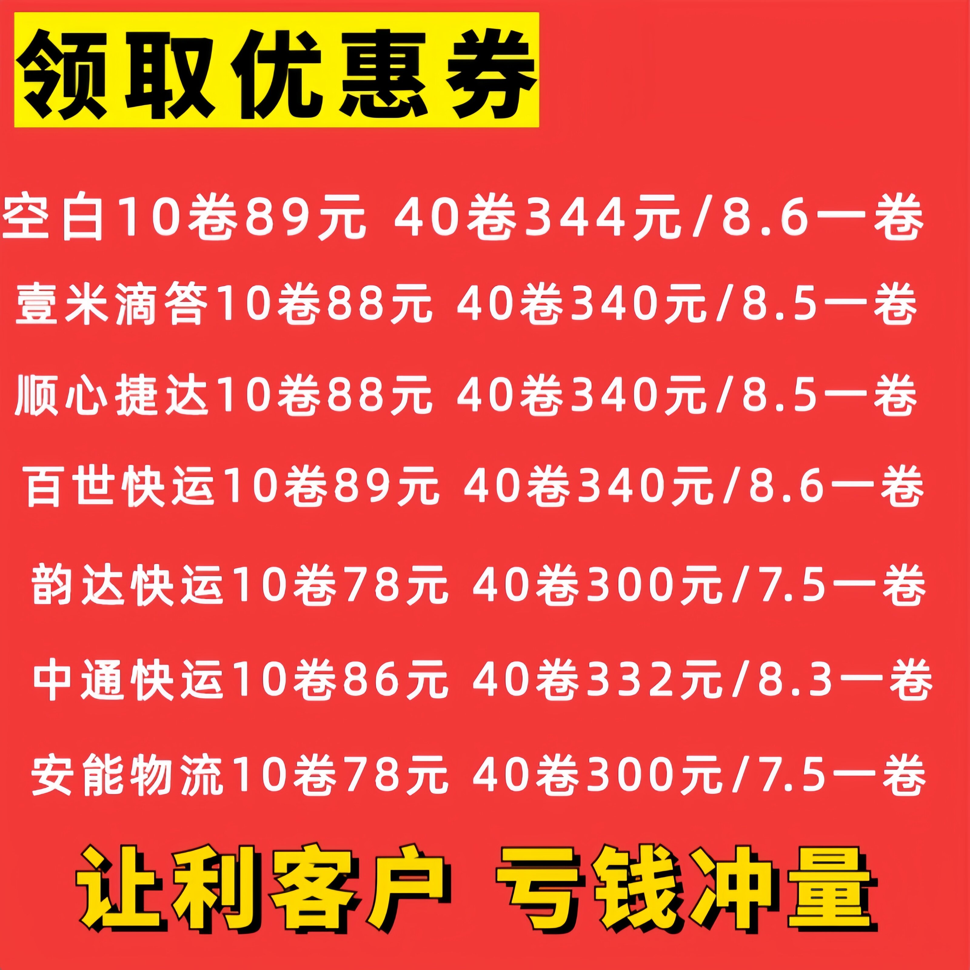 快运安能中通热敏百世