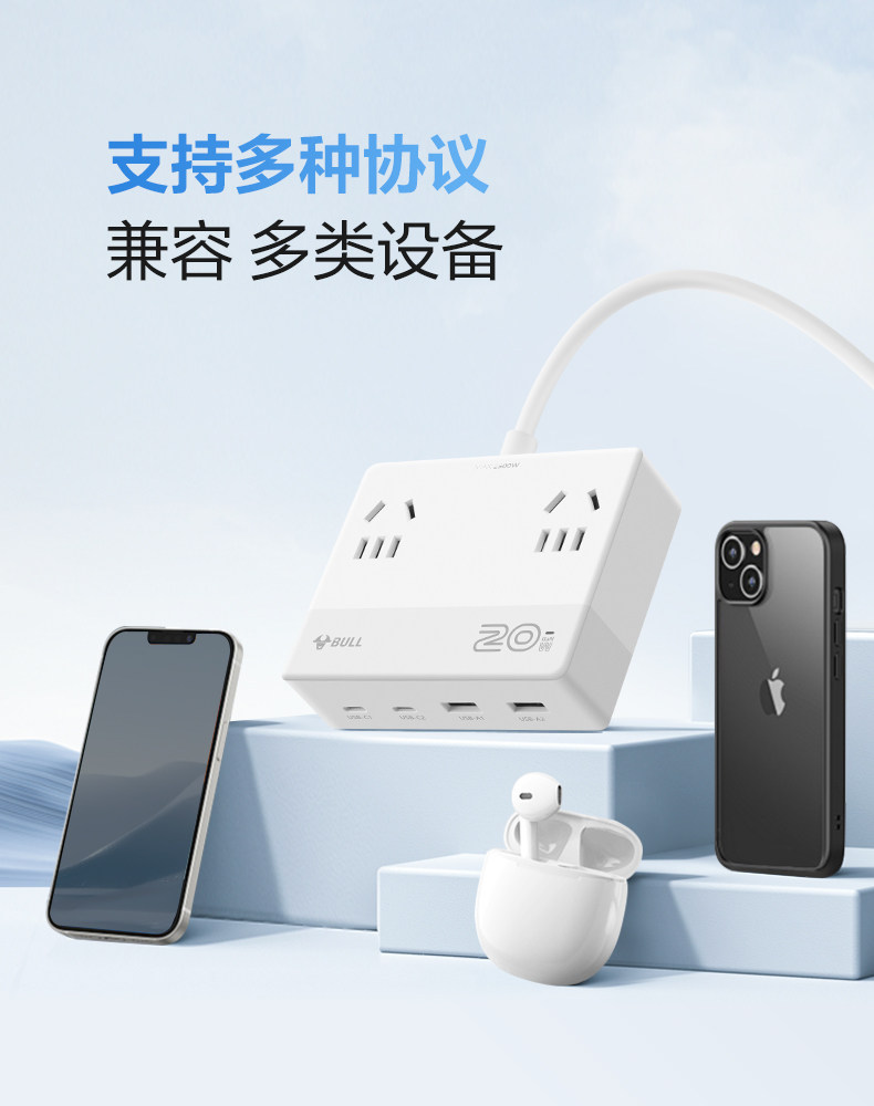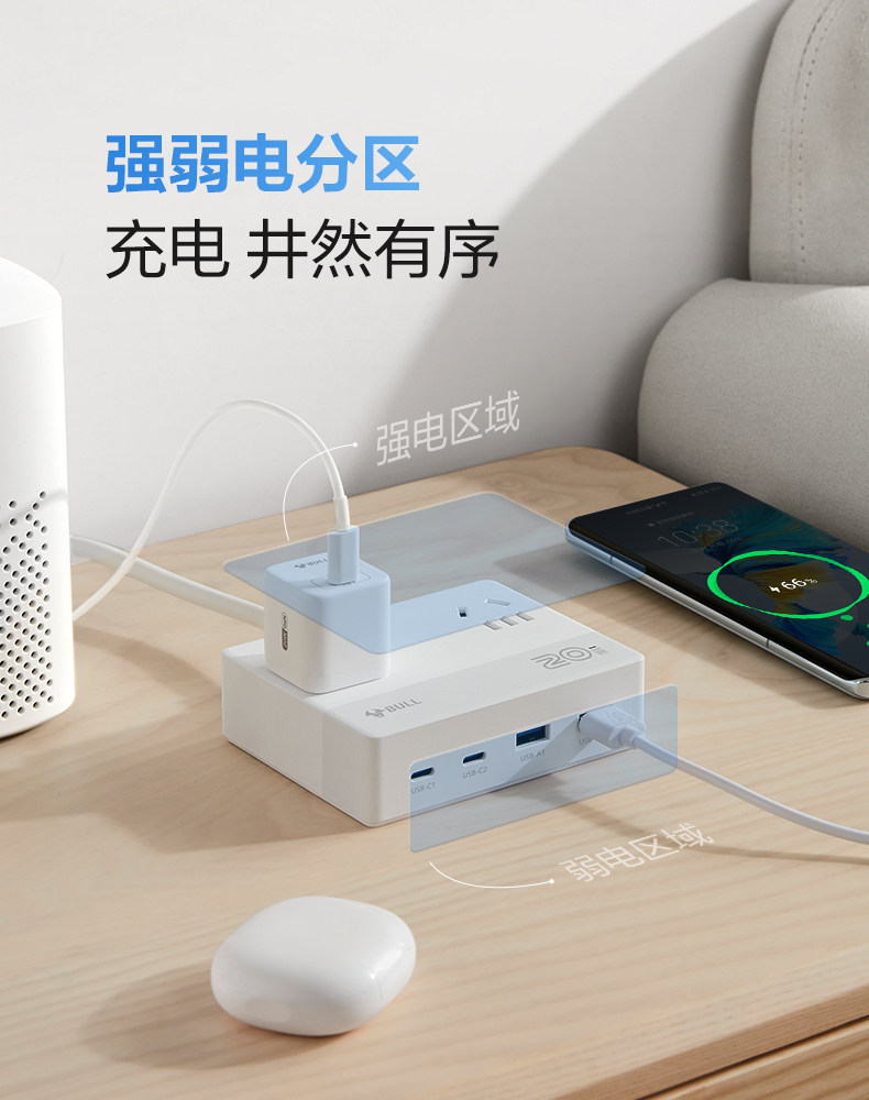 📚 公牛桌面充电站器官方插座插排拖插线板带usb多功能插板扁平排插