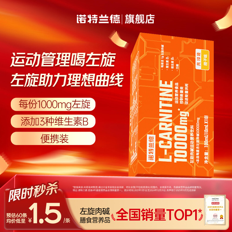 📚 诺特兰德左旋肉碱10万运动健身补剂饮料十万左旋10000便携装正品