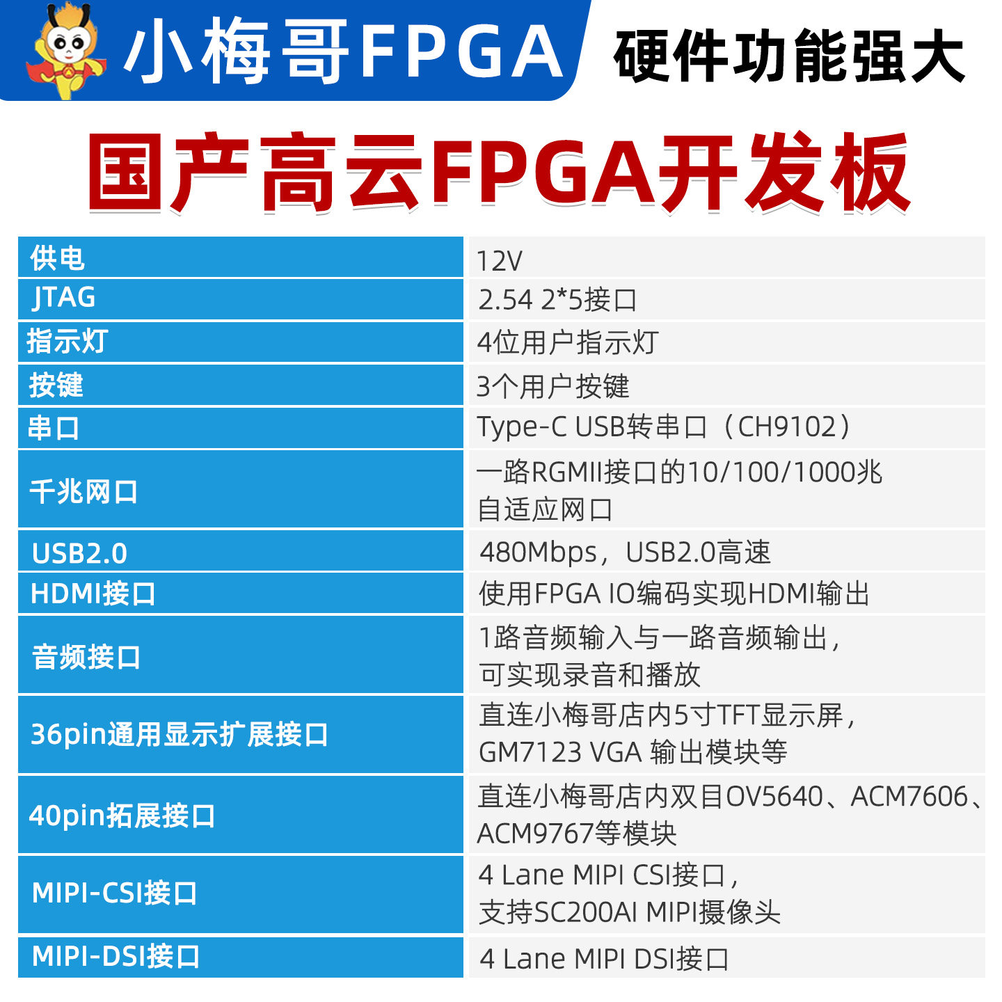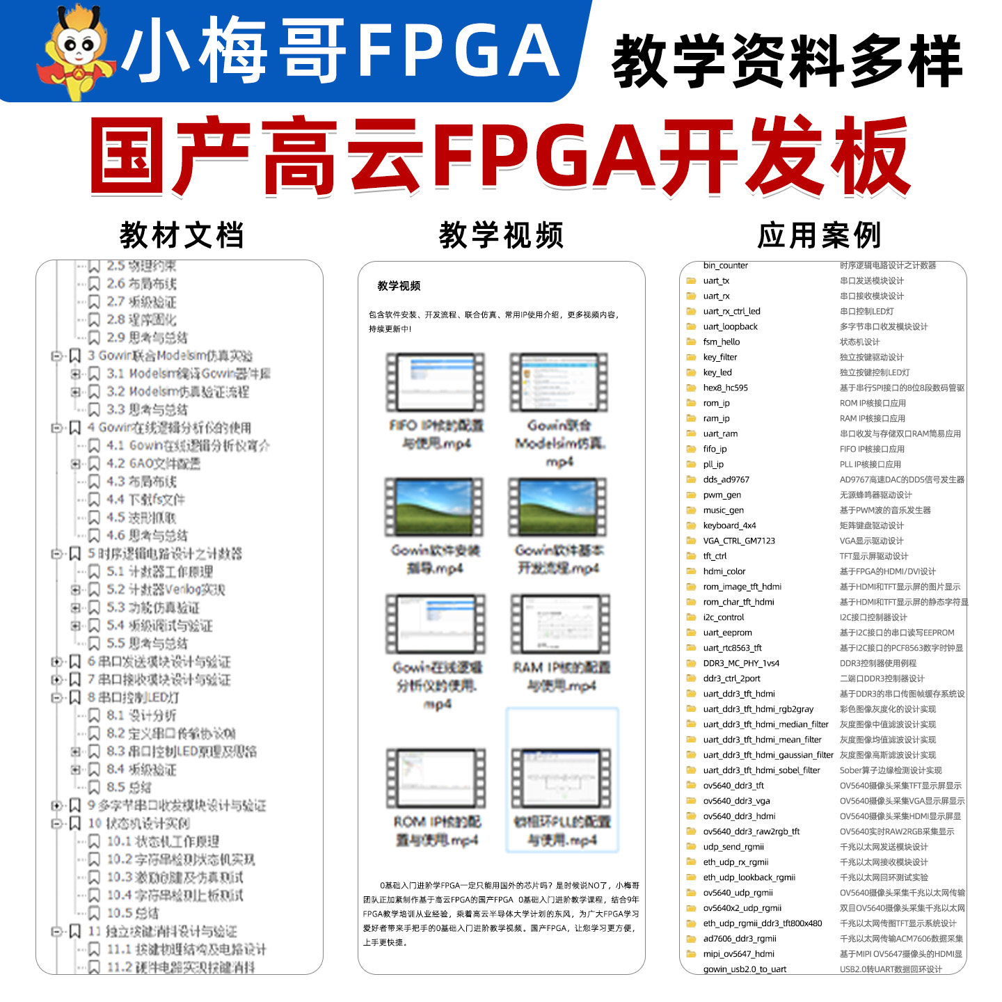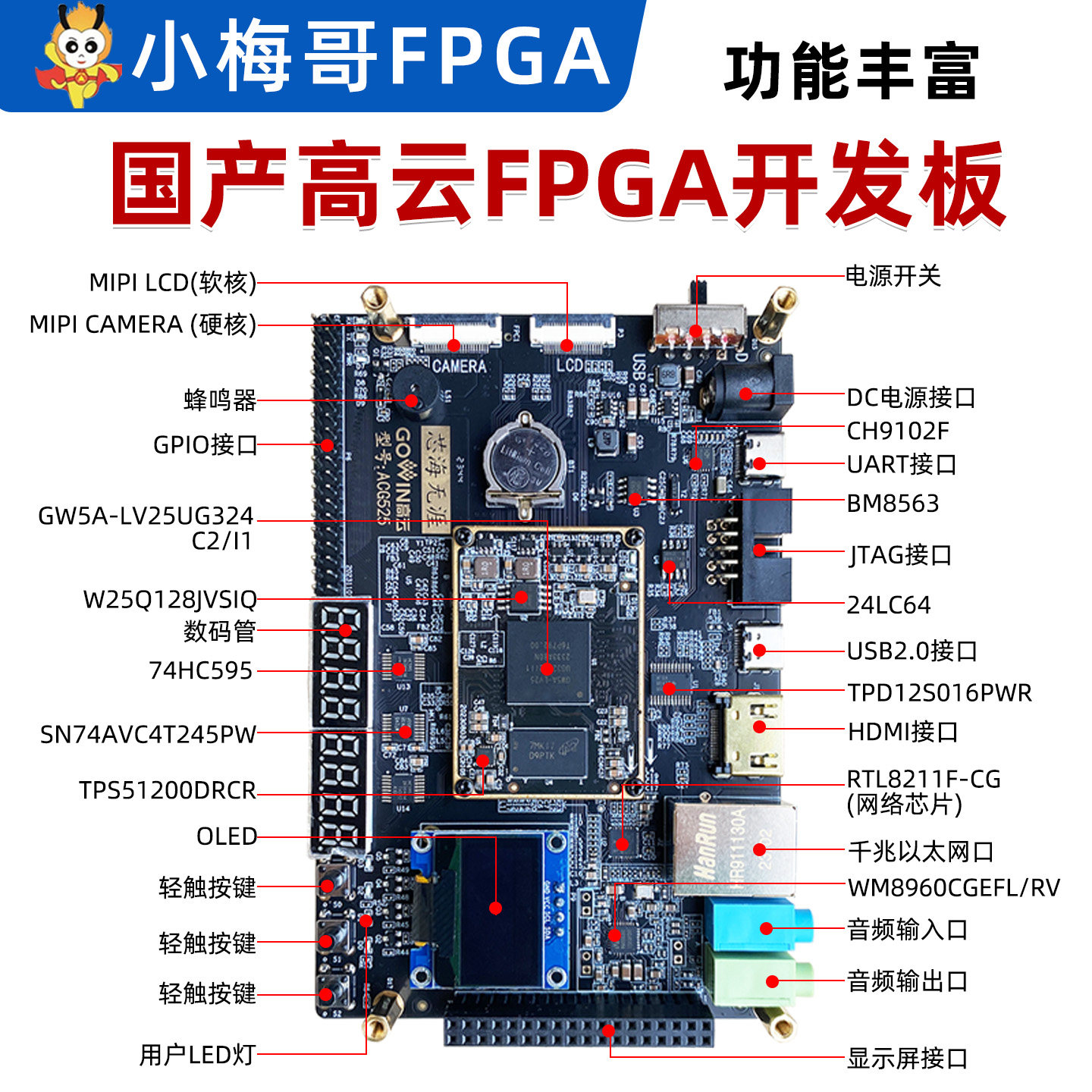📚 小梅哥国产高云FPGA开发板MIPI DDR3 USB AroraV晨熙ACG525教学