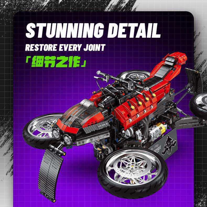 📚 小角度JD033拉扎雷斯电动变形飞行摩托模型摆件拼装积木玩具