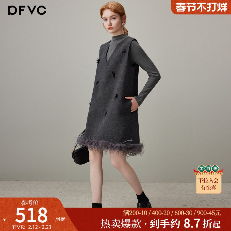 💃解锁冬日优雅新篇章!DFVC优雅V领背心裙套装来啦!👸冬季新款小个子连衣裙推荐!券后价仅需598💰