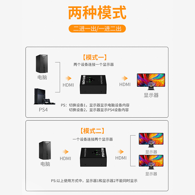 💥超值!HDMI一分二切换器二进一出,电视一拖二轻松搞定🎉