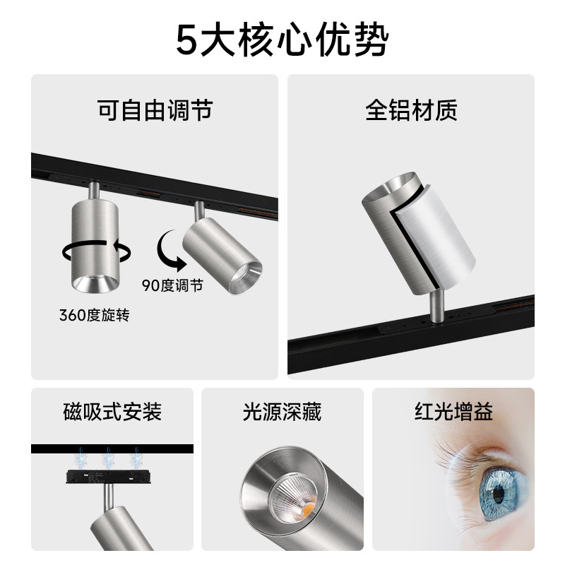 📚 包豪斯明装轨道射灯不锈钢轨道灯防眩可调角度客厅无主灯led家用
