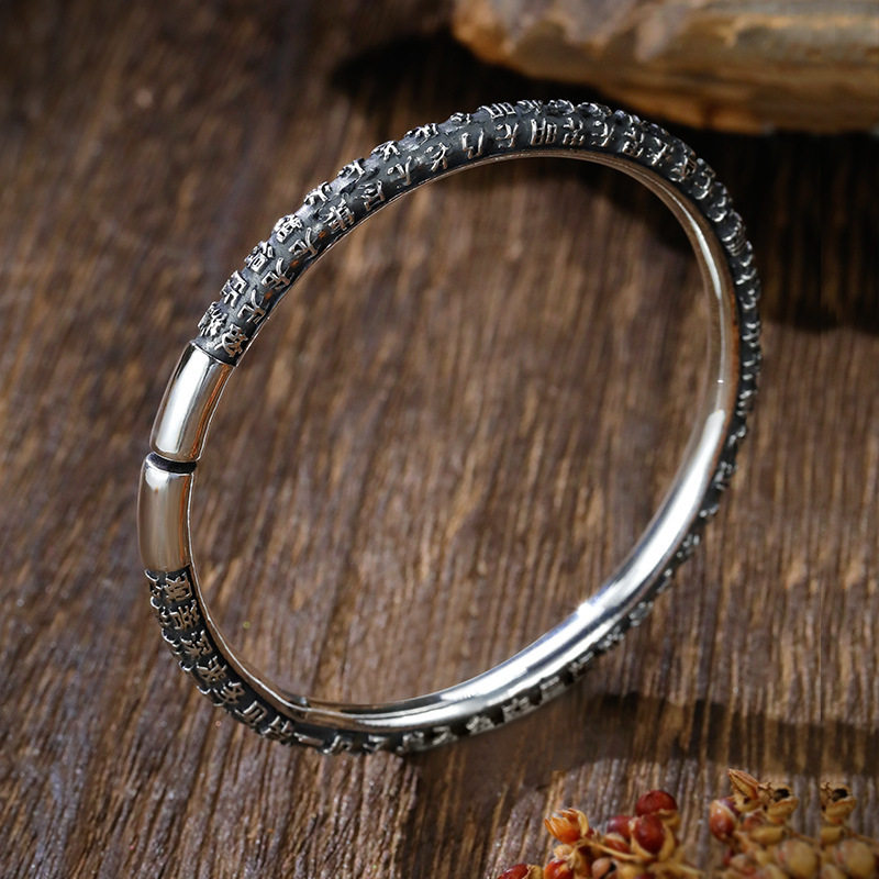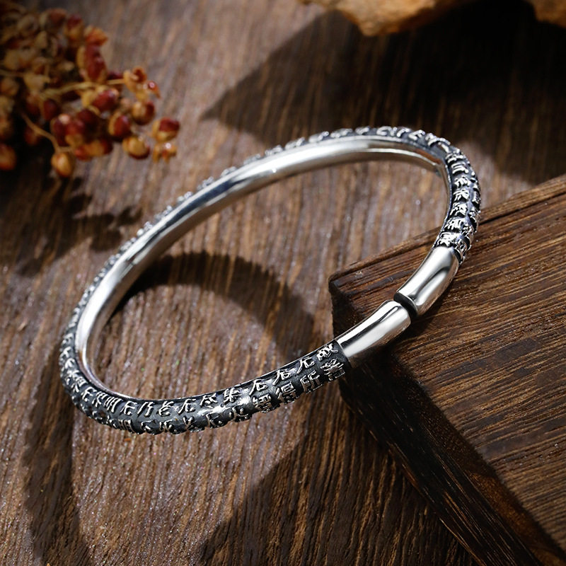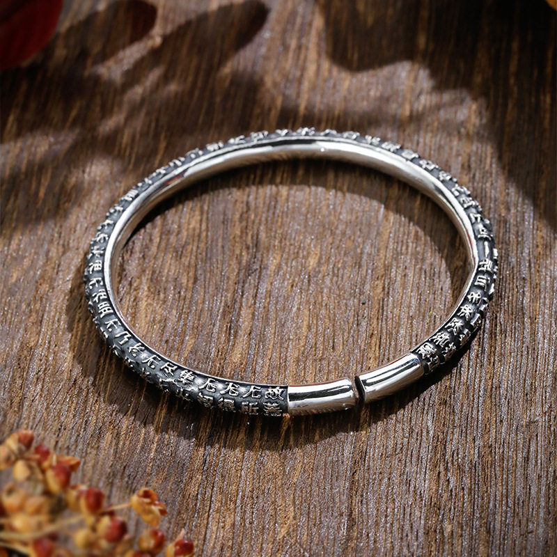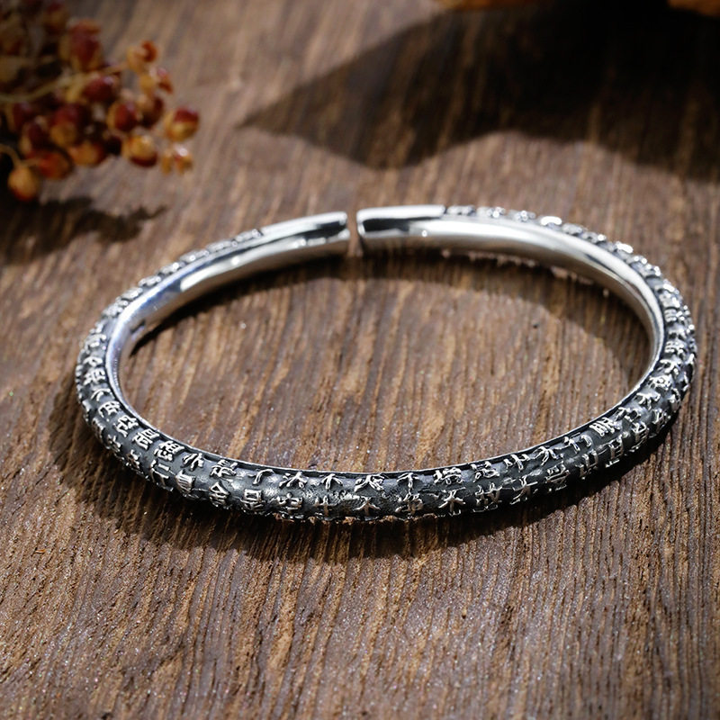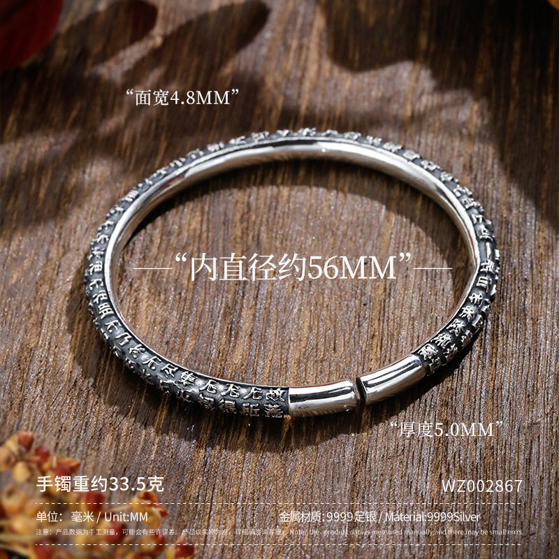 📚 经文手镯女小众设计实心泰镯子新款手环礼物9999银心经足纯银
