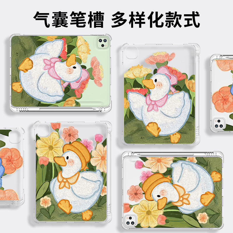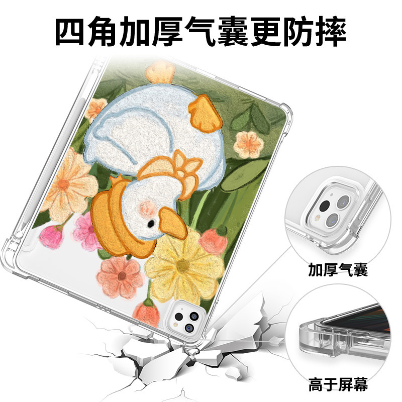 📚 ipad9保护壳卡通air4透明单面ipadpro带笔槽2020新款12.9气囊6防摔软mini5鸭子iapdair4无盖10.2寸11护套air3