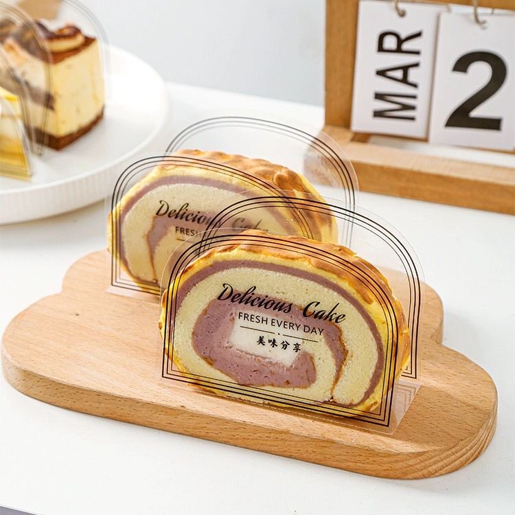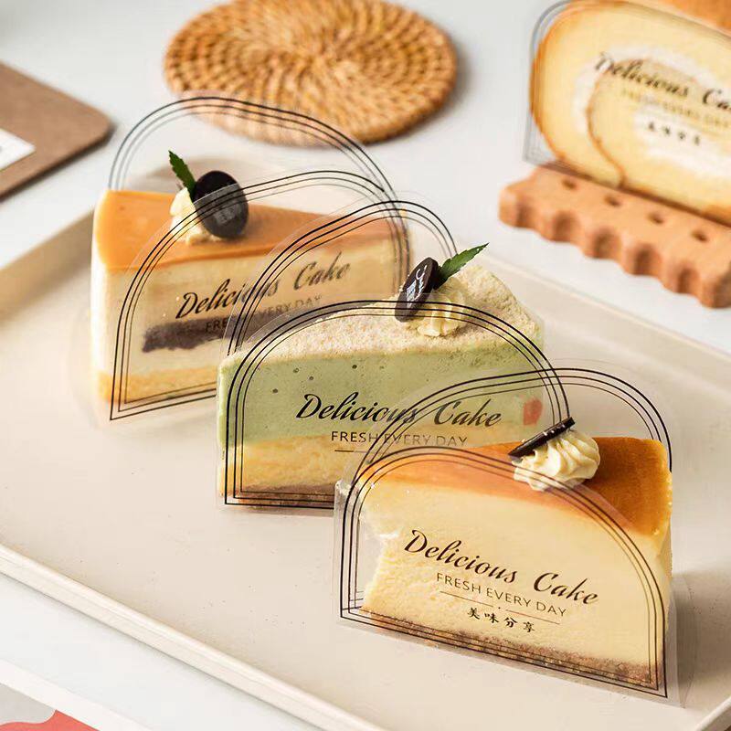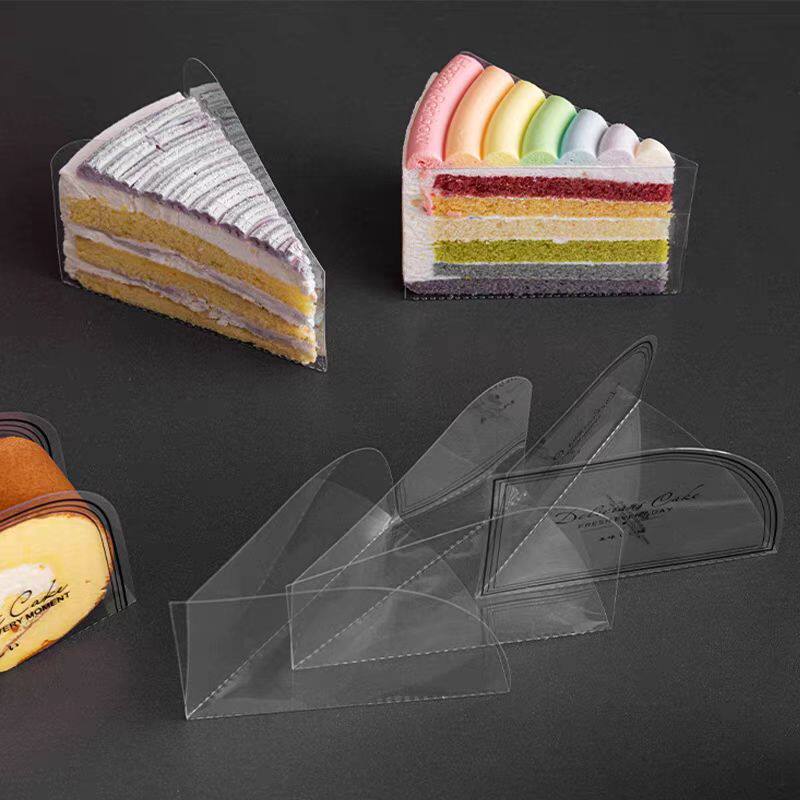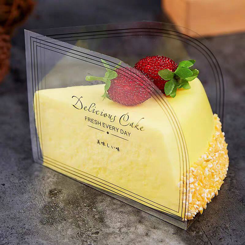 📚 慕斯垫一体三角印花硬围边切块蛋糕底托西点透明打包托烘焙包装