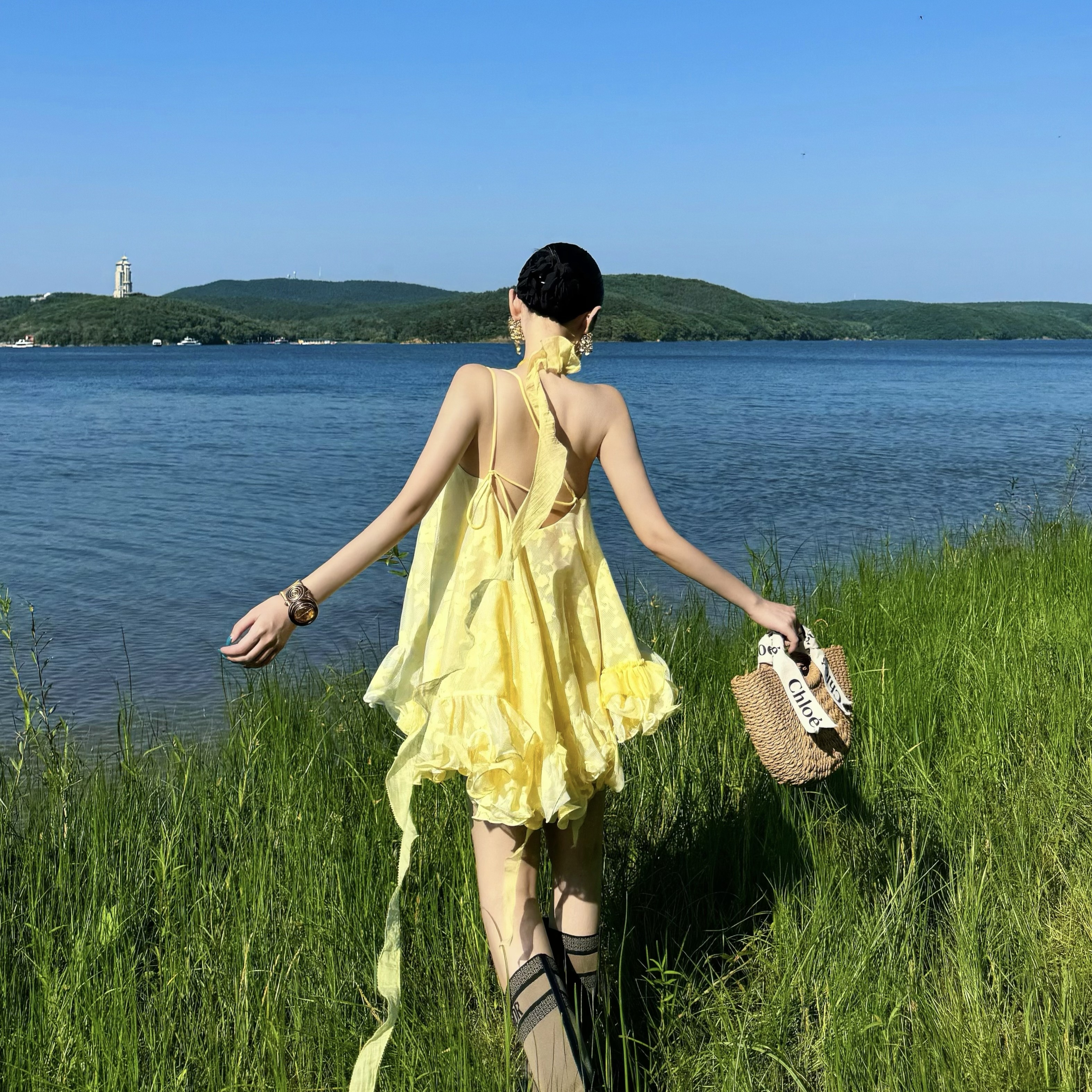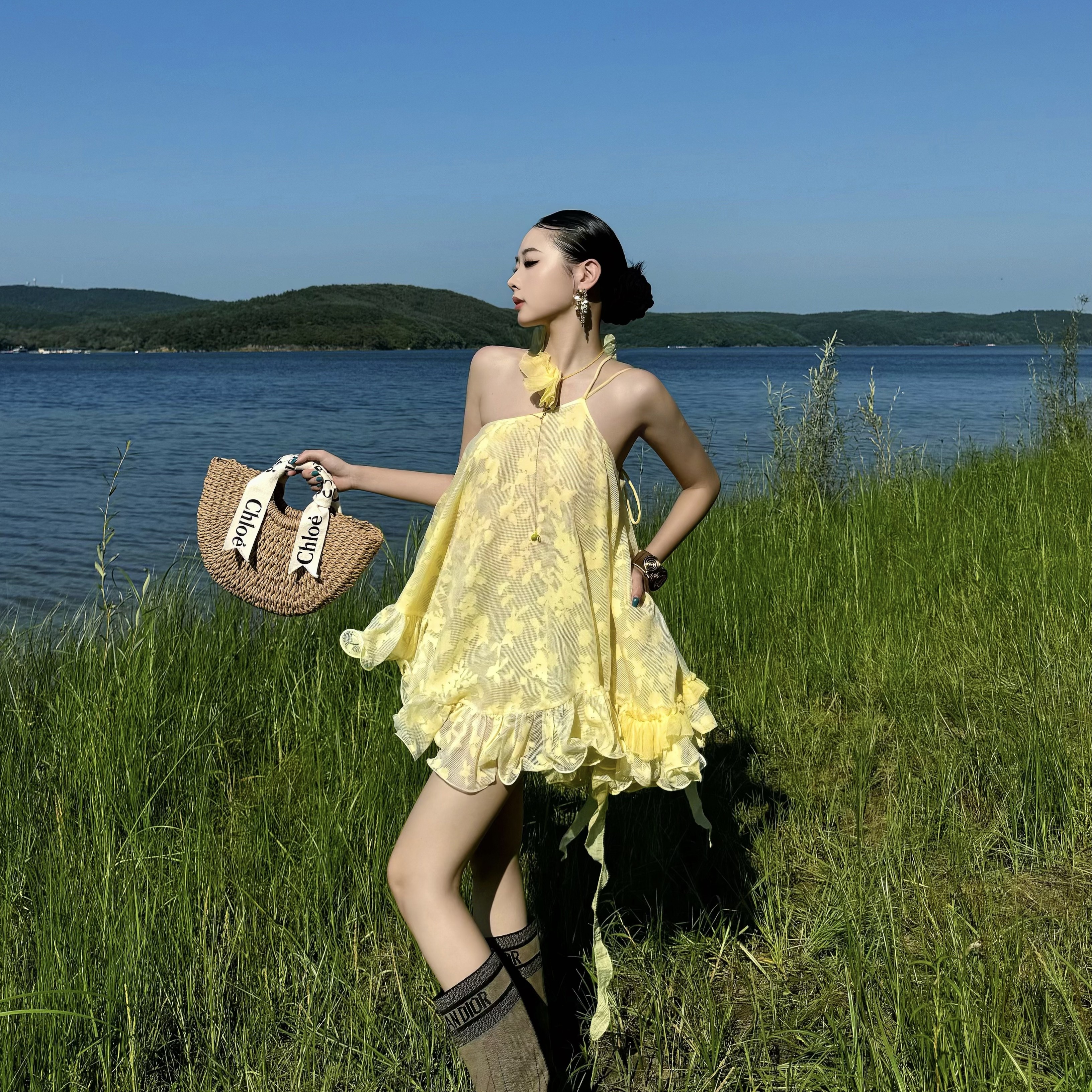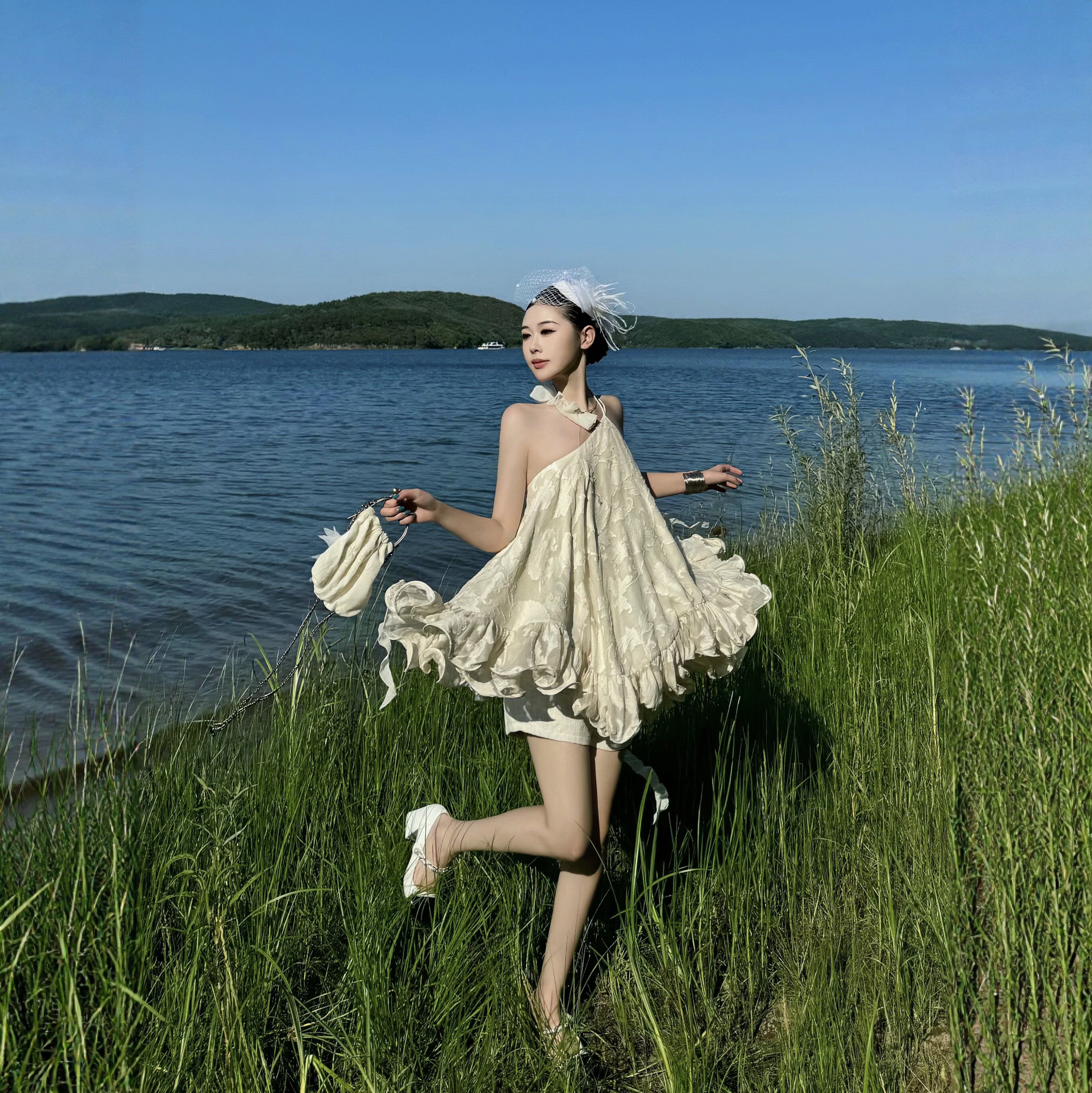 📚 EVAN【正确版●露思同款】仙女吊带蓬蓬裙飘逸感不规则度假风短裙
