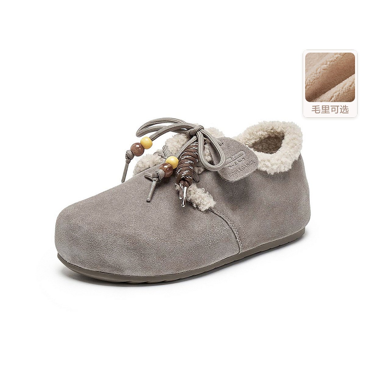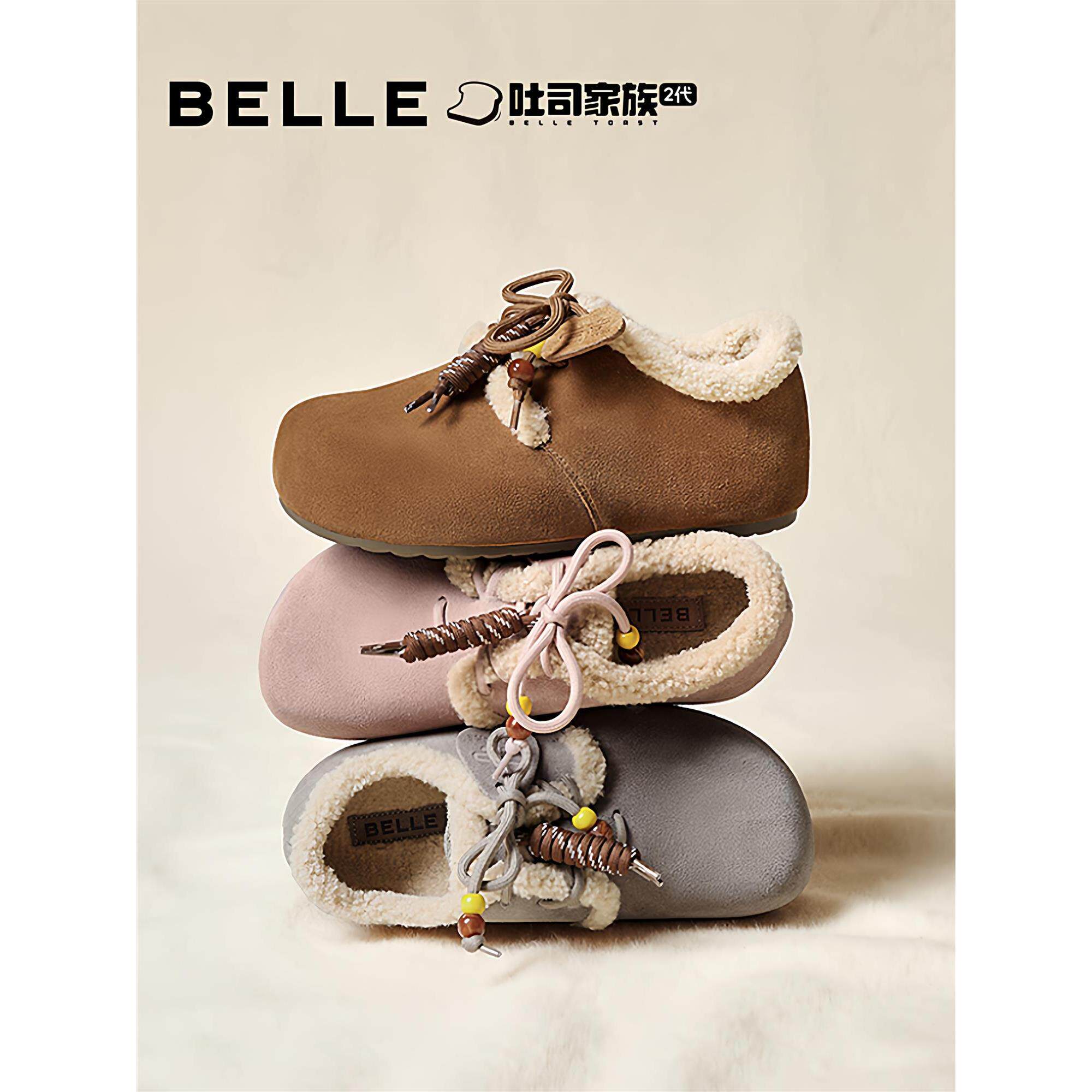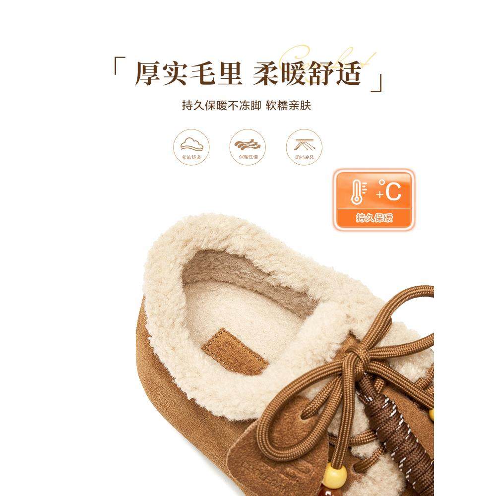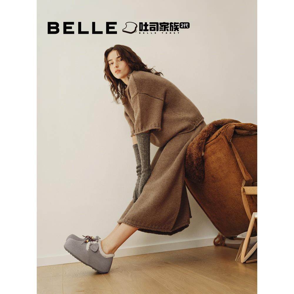 📚 百丽加绒松果吐司勃肯鞋女鞋子2025冬新款厚底棉鞋雪地靴B2831DM5
