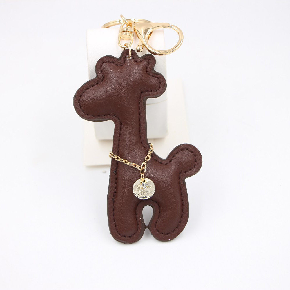 📚 PU皮革长颈鹿皮制钥匙扣汽车挂件 卡通动物小鹿书包挂件批定发制