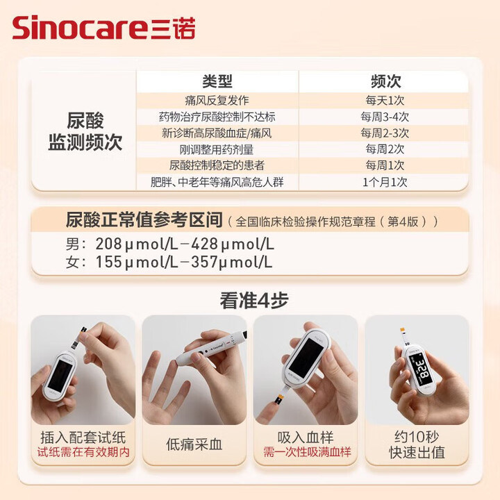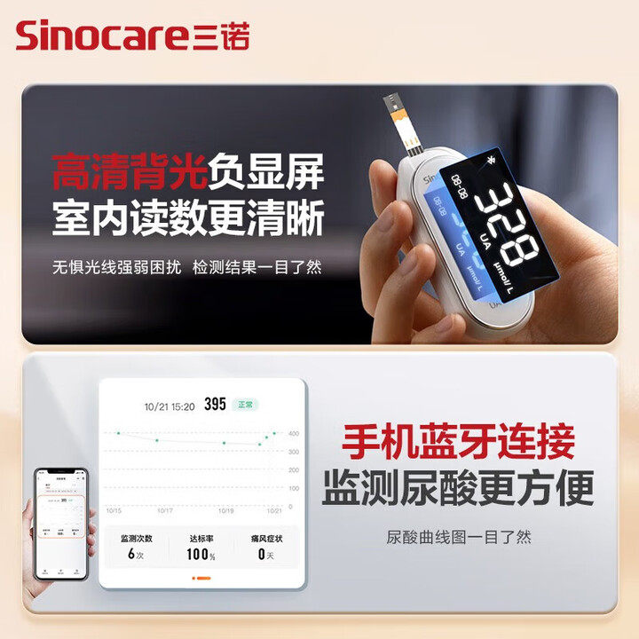 📚 三诺UApro尿酸检测仪家用试纸痛风医用蓝牙连接测尿酸的仪器