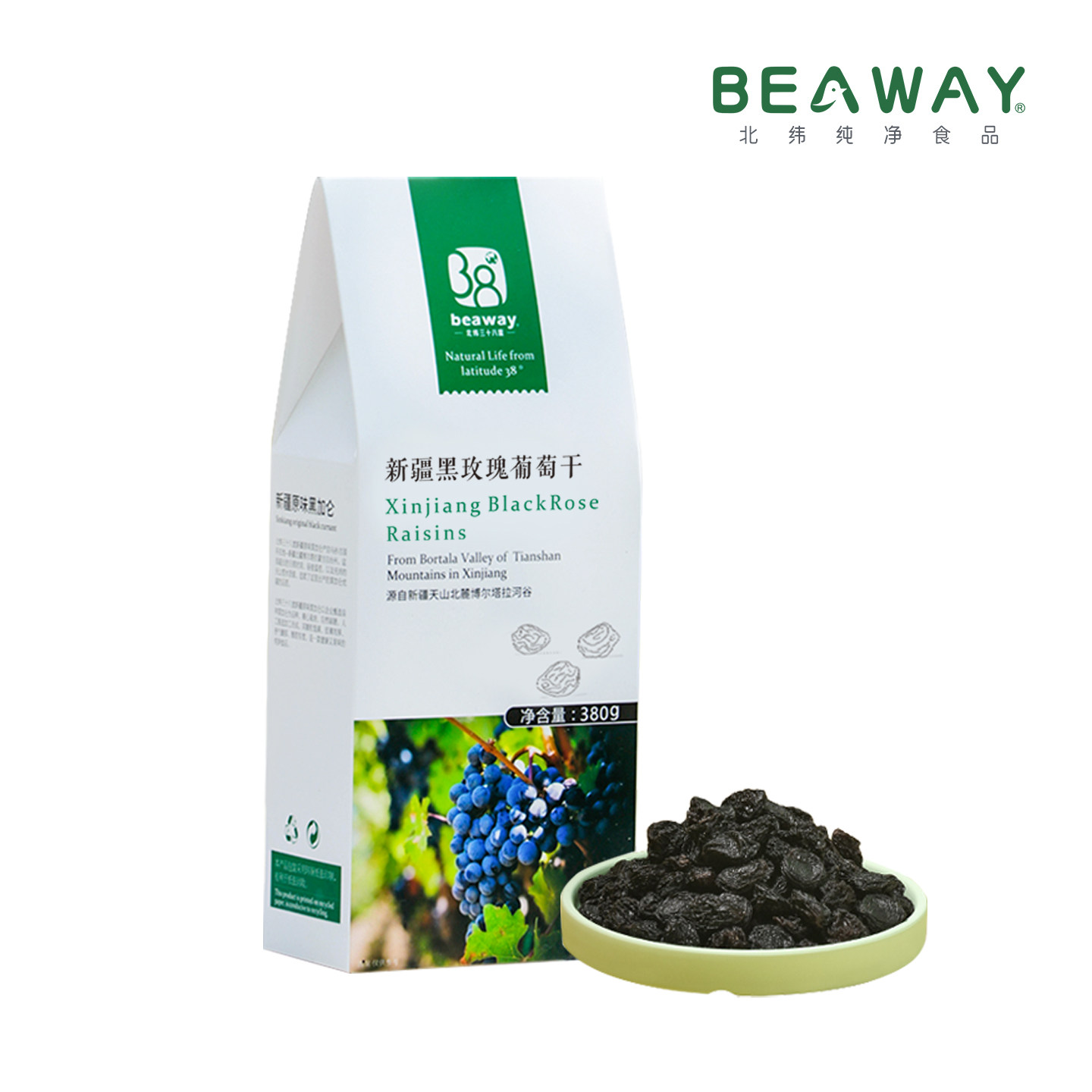 📚 北纬纯净食品|38°新疆黑玫瑰葡萄干黑加仑大圆粒原味零食380g