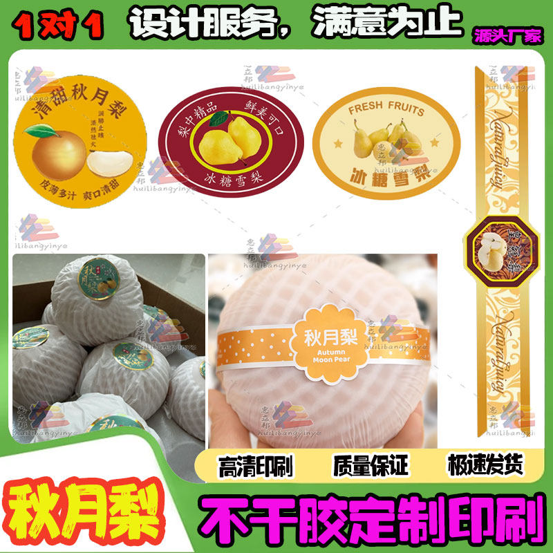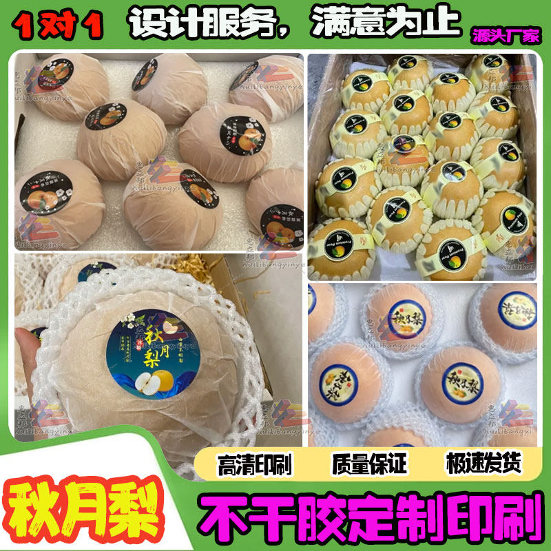 📚 定制秋月梨标签山东莱阳砀山酥梨丰水梨不干胶贴纸水果礼盒腰封