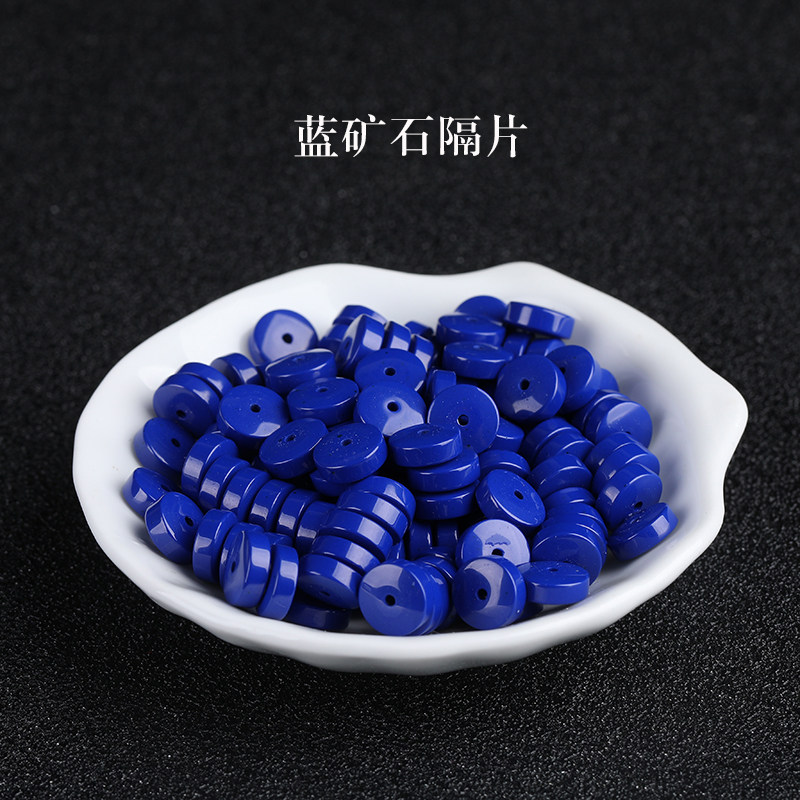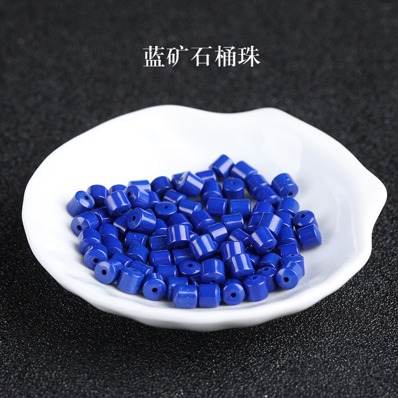 📚 7A天然蓝矿石散珠子桶珠隔片男女士手链手串青金石蓝108佛珠单颗