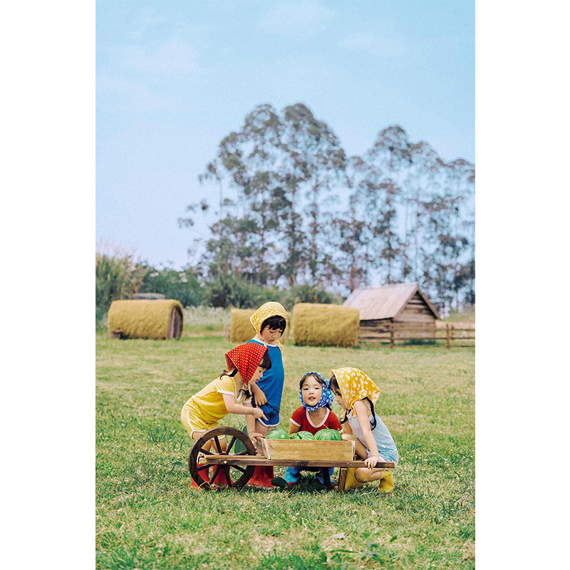 📚 红色头巾儿童摄影服装夏天多巴胺户外景照宝宝百天周岁照影楼拍照