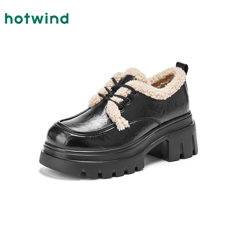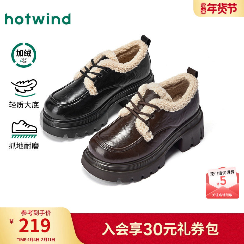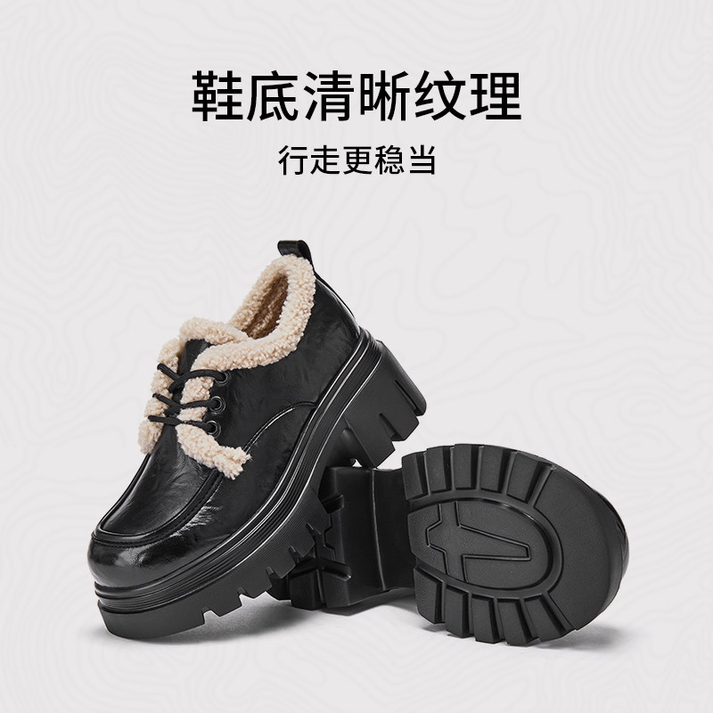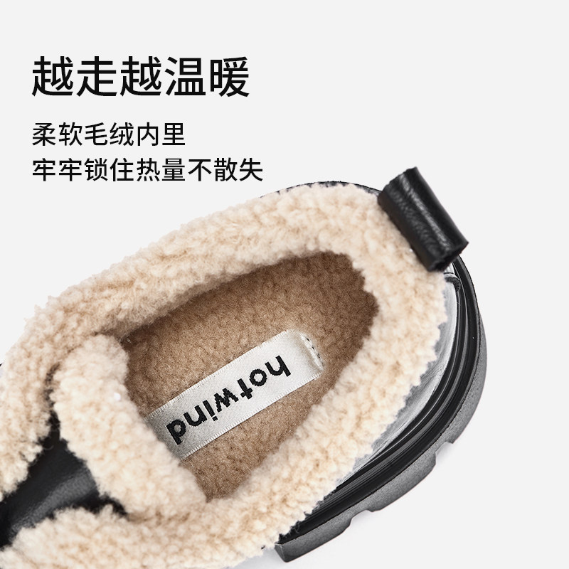 📚 热风加绒乐福鞋女款2025年冬季新款厚底增高黑色小皮鞋百搭女鞋子