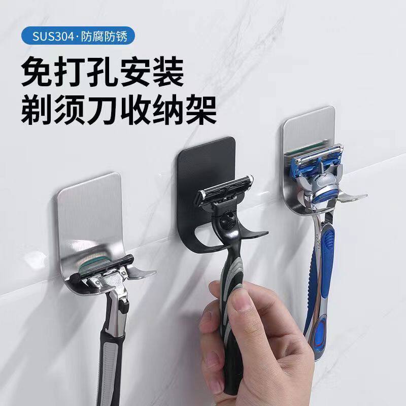 📚 304剃须刀架不锈钢免打孔挂衣钩浴室置物架刮胡刀挂架粘钩
