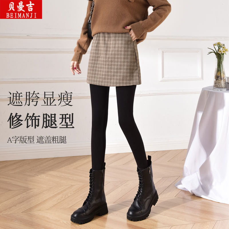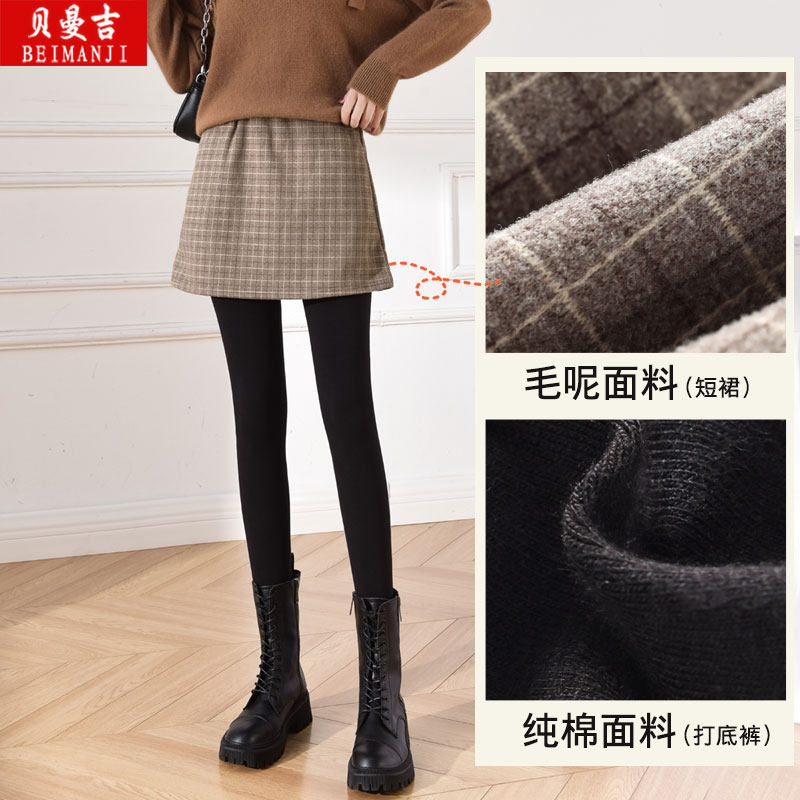 #假两件打底裤 #秋冬季穿搭 #毛呢格子短裙 #显瘦高腰裙 #券后价63元 #时尚达人