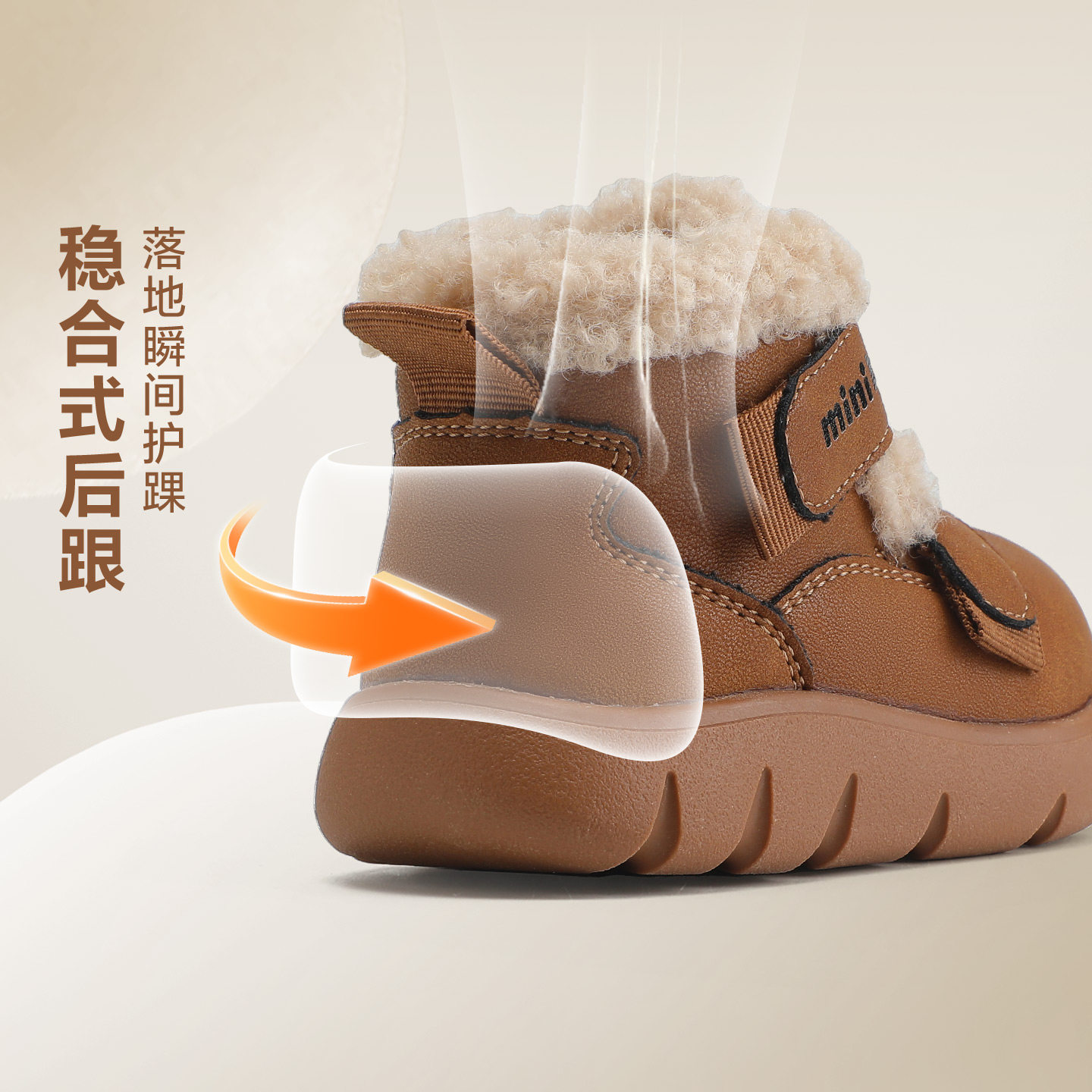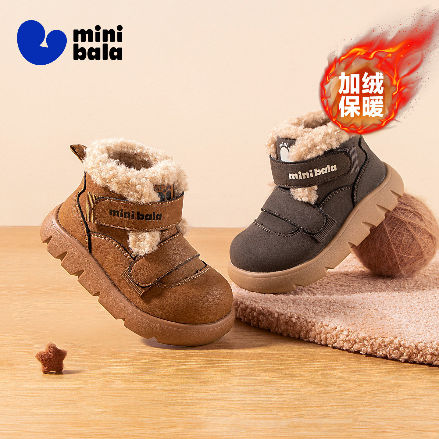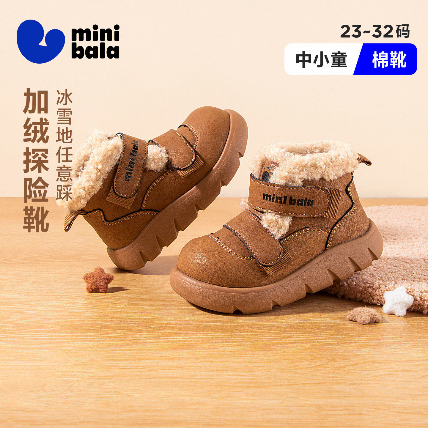 📚 迷你巴拉冬季加绒保暖冬季新款男童棉靴女童小皮靴中小童短靴子