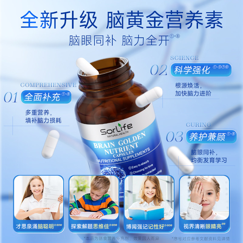 📚 SorLife诗丽芙DHA脑黄金补脑神经酸学生高中生记忆力专用藻油鱼油